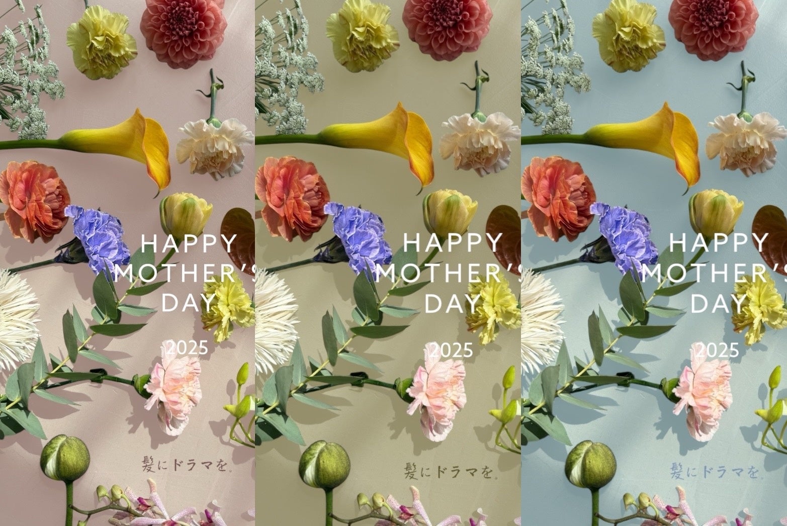 本セットには、「髪にドラマを。」のクリエイティブチームが、母の日のために制作したオリジナルアートギフトカードを1枚同封(全3種からランダム封入)。