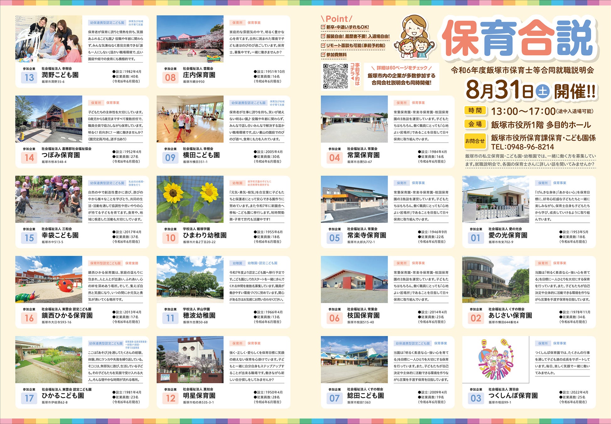 【参加申込受付中】 新卒・中途問わずご参加可能。履歴書不要、服装・入退場自由。飯塚市保育士等合同就職説明会も同時開催