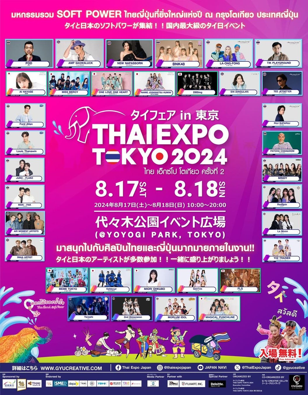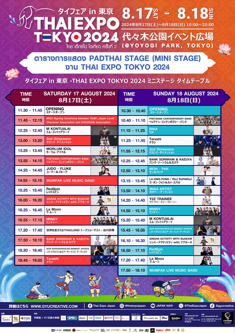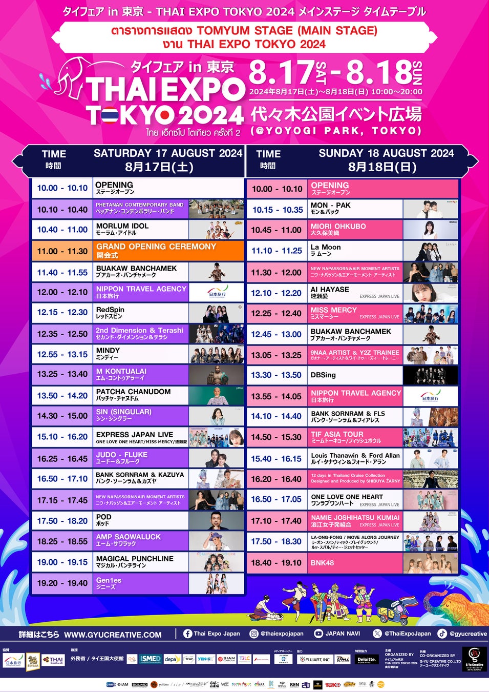 今夏、東京・代々木公園にて開催される日本最大級のオール“タイ”イベント「タイフェアin東京~THAI EXPO TOKYO 2024(タイエキスポ)」ステージのタイムテーブルが発表されました。