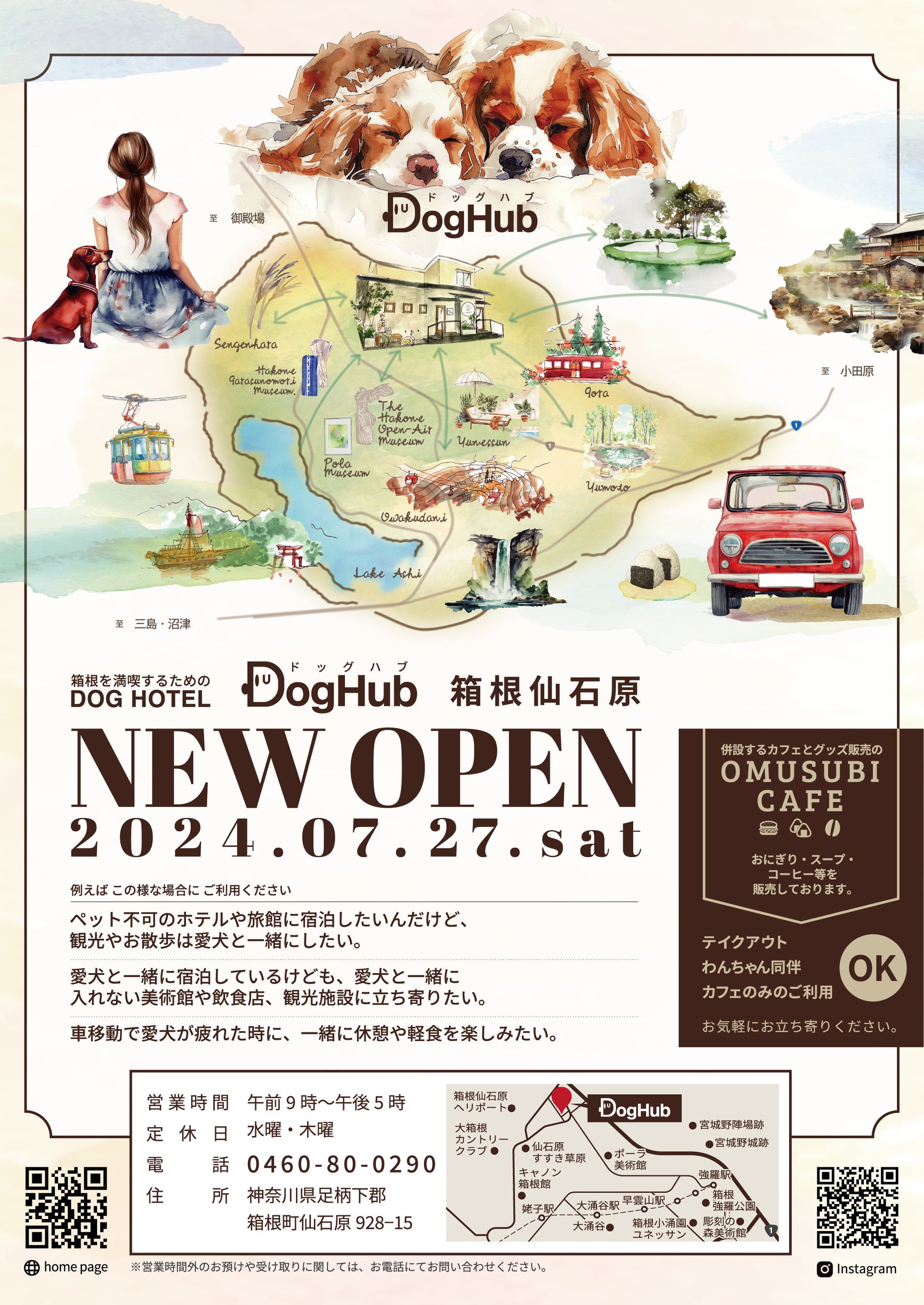 箱根で初のわんちゃん専用ペットホテルとして、ペットツーリズム需要に応える「DogHub箱根仙石原」が2024年7月27日(土)にオープン。併設するOMUSUBI&SOUP CAFEも同時オープン。