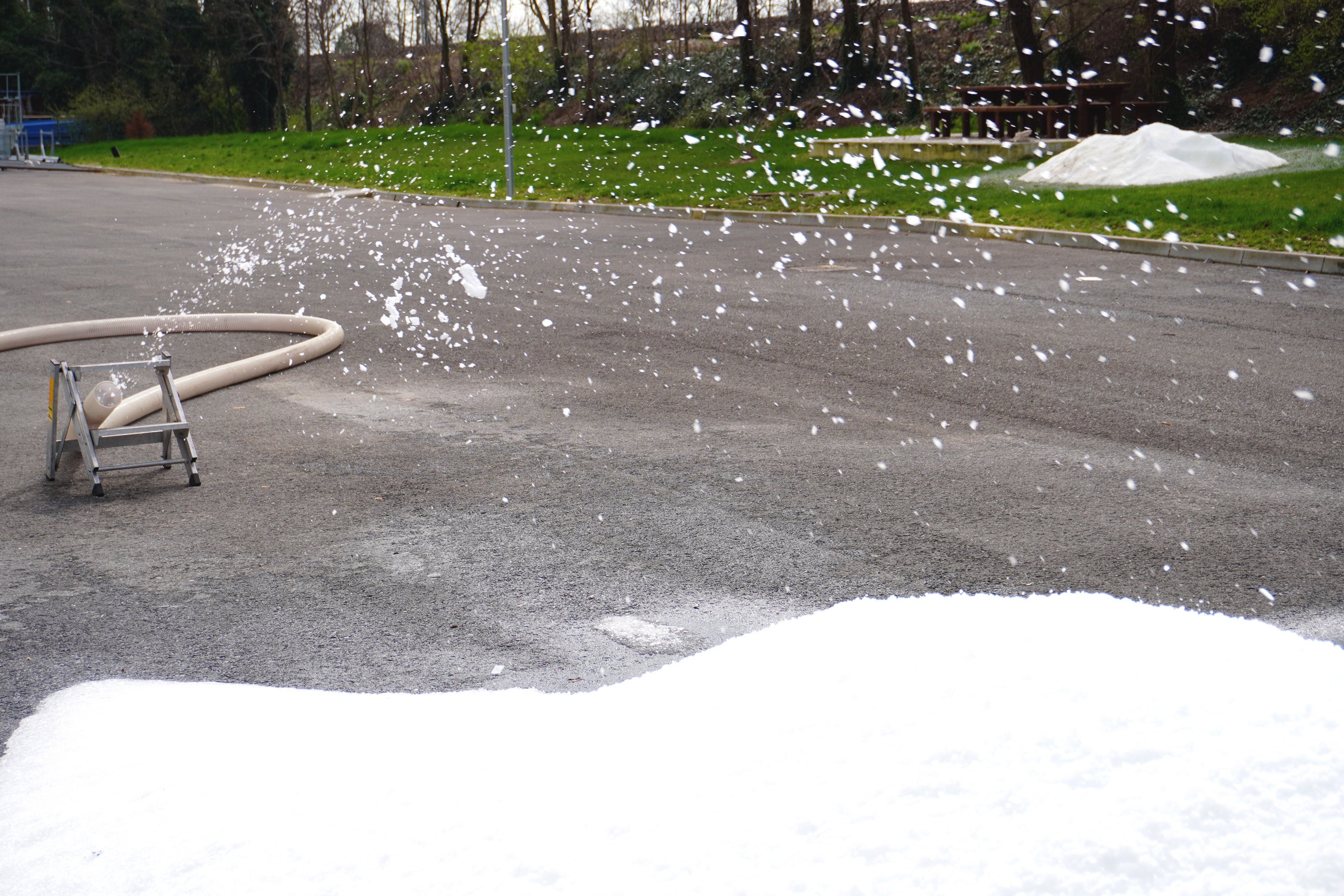 今回のデモンストレーションはコーエィ株式会社(群馬県前橋市)が、イタリアIndustrial Frigo Ice社と国内代理店契約を締結し、この度⽇本初となる最新型スノーマシン「SNOW MAX」の販売を開始するにあたってのイベントです。
