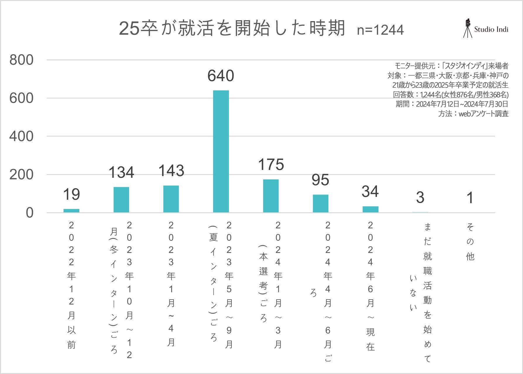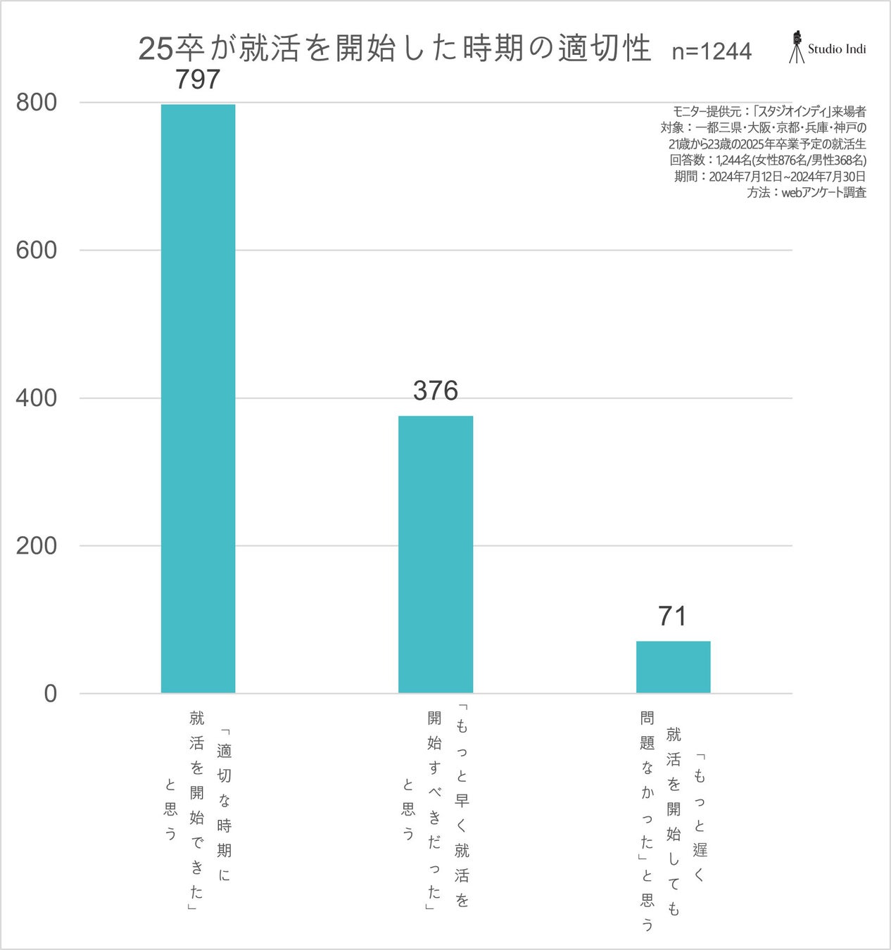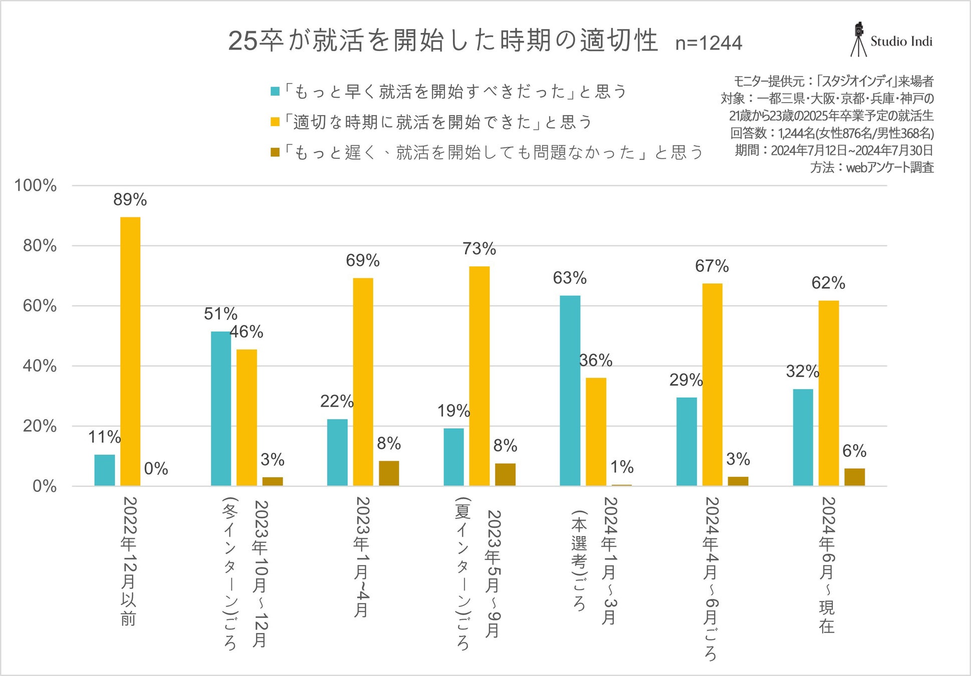 アンケート調査対象:2022年7月11日から2024年7月10日までの期間に、スタジオインディに来館した25卒予定の21歳から23歳の就活生