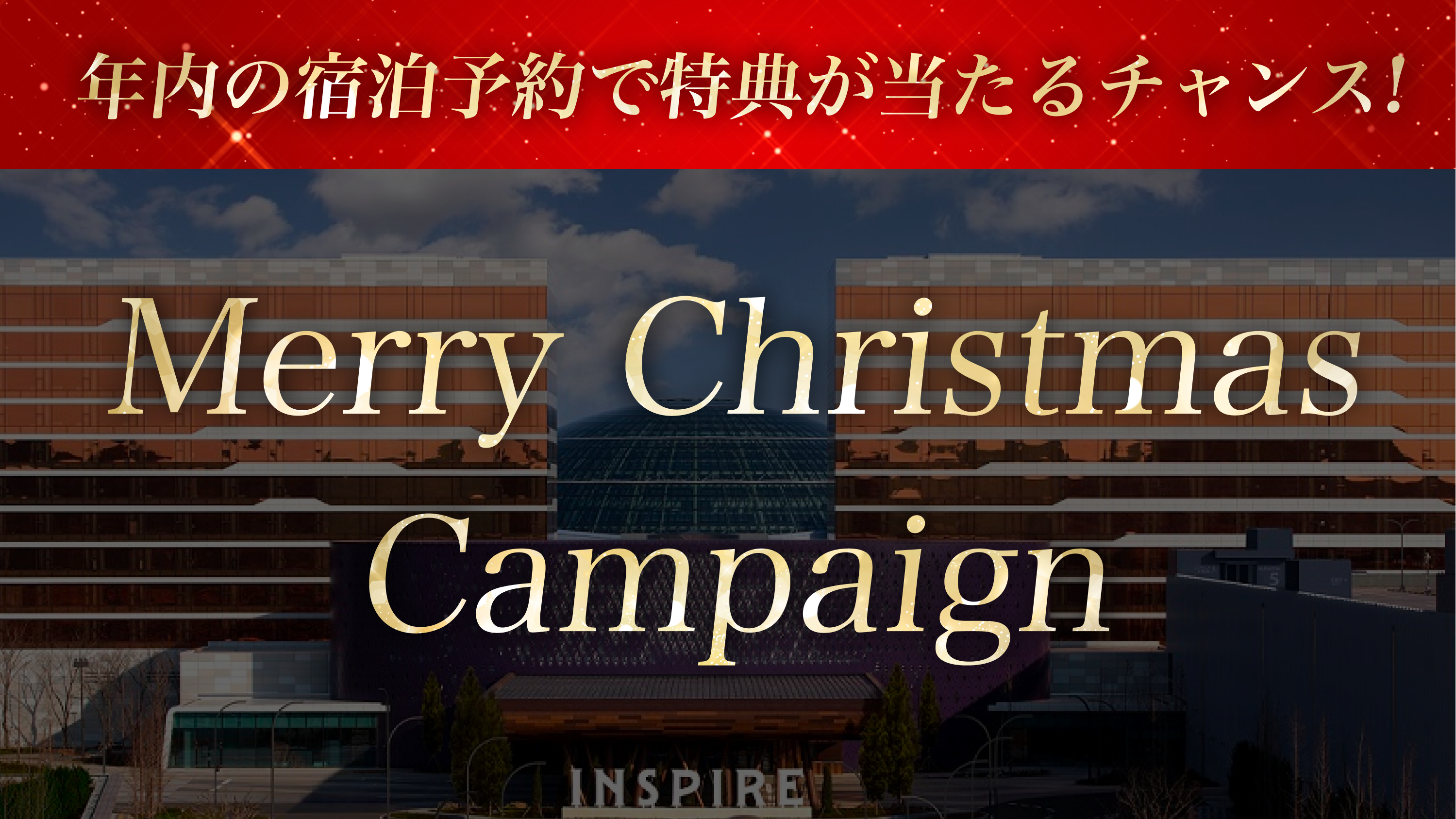カジノクラブを通じて年内のインスパイアホテルへの宿泊予約を完了いただいた方を対象としてキャンペーンを実施いたします。