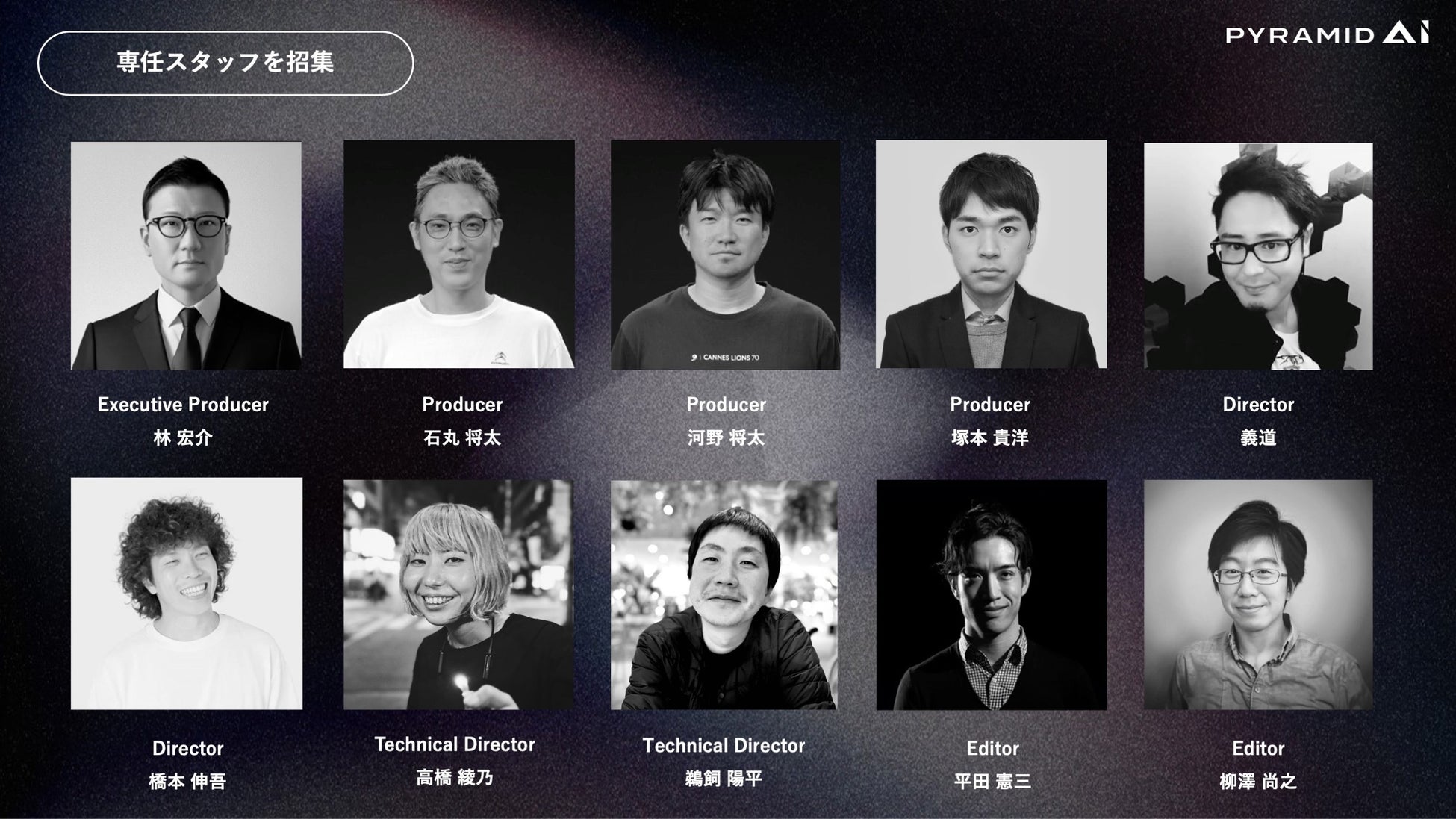 PYRAMID AIは生成AIを撮影やCGの安価な代替案ではなく、クリエイターが自由な発想を実現させるための新しい選択肢(ツール)と考えています。 これまで培ってきたプロデュース力とクラフトマンシップを活かし、生成AIを活用したコンテンツ制作においても卓越した品質を提供していきます。今後どのように発展していくかは未知数ですが、だからこそクリエイティブの可能性が広がっていると感じています。