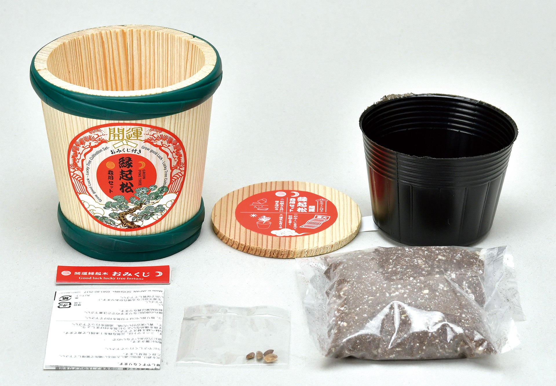 内 容:ミニ樽/フタ/おみくじ/インナーポット/培養土/種/説明書/