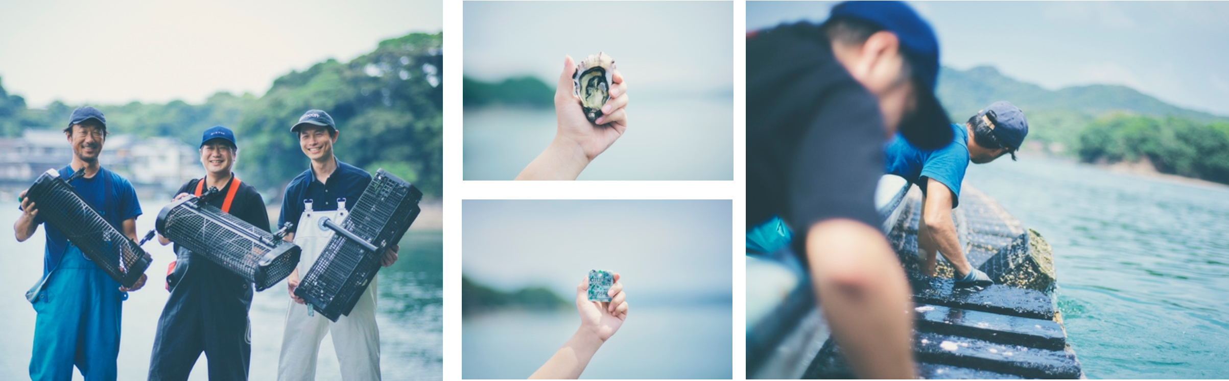 漁を明るくユーモアたっぷりに教えてくれる地元漁師の石川隆将さんとの牡蠣養殖体験です。養殖場のある浜島町英虞湾は美しいリアス海岸としても有名。牡蠣の赤ちゃんのお手入れから滅菌工程まで一連の流れを体験し、最後には海洋廃棄物を再資源化して作られた、旅行者ひとりひとりのネームタグをカゴに取り付けることで体験の証とします。旅行後には石川さんから牡蠣の成長の様子などが動画や写真で送られ、旅行者が地元に戻ると石川さんと育てた牡蠣を食べながら交流できる仕組みをつくっていく予定です。