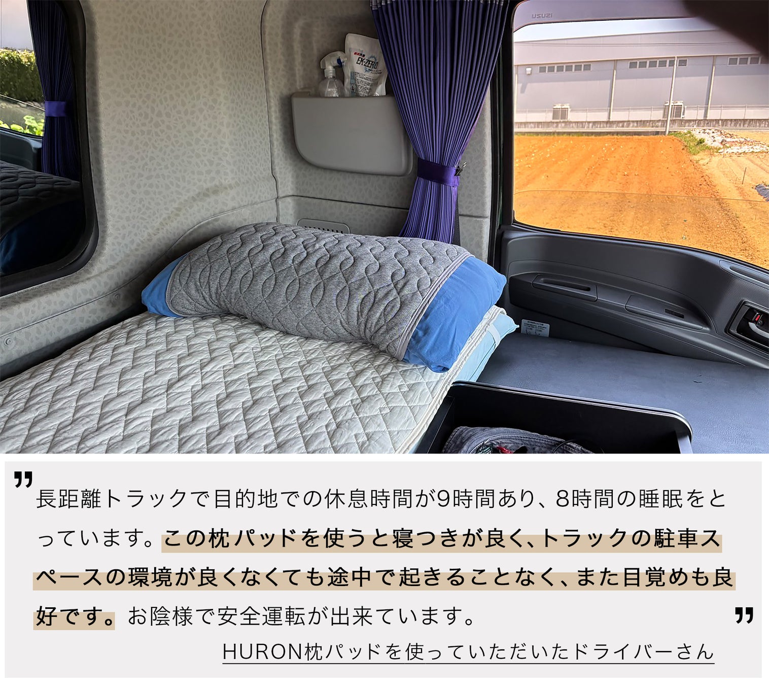 今回の枕や枕カバーで、深夜運行や不規則な生活が続く長距離ドライバーの皆さまに