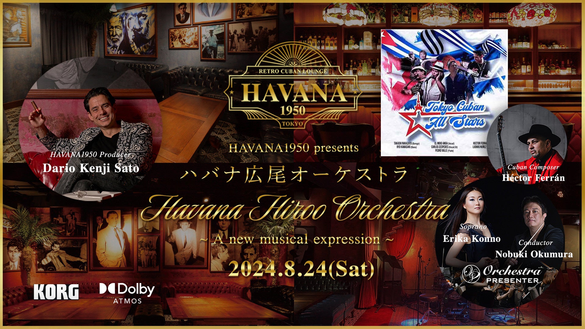 ⽇本を舞台に活躍する世界各国出⾝のアーティストと世界の⾳楽を紹介する「東京ワールドミュージックシリーズ」。東京・広尾にあるPREMIUM RETRO CUBAN BAR & RESTAURANT「HAVANA1950」のダリオ・ケンジ・サトウ プロデュース、キューバ出⾝のコンポーザー、エクトル・フェラン率いる「Tokyo Cuban All Stars」と指揮者、奥村伸樹率いる「Orchestra Presenter」とのコラボレーションによるスペシャルオーケストラ「Havana Hiroo Orchestra」による広尾キューバンスタイルの⾳楽を、Dolby Atmos®、Dolby Vision® *の⾼⾳質、⾼画質により、会場の臨場感をそのままにお届けします。