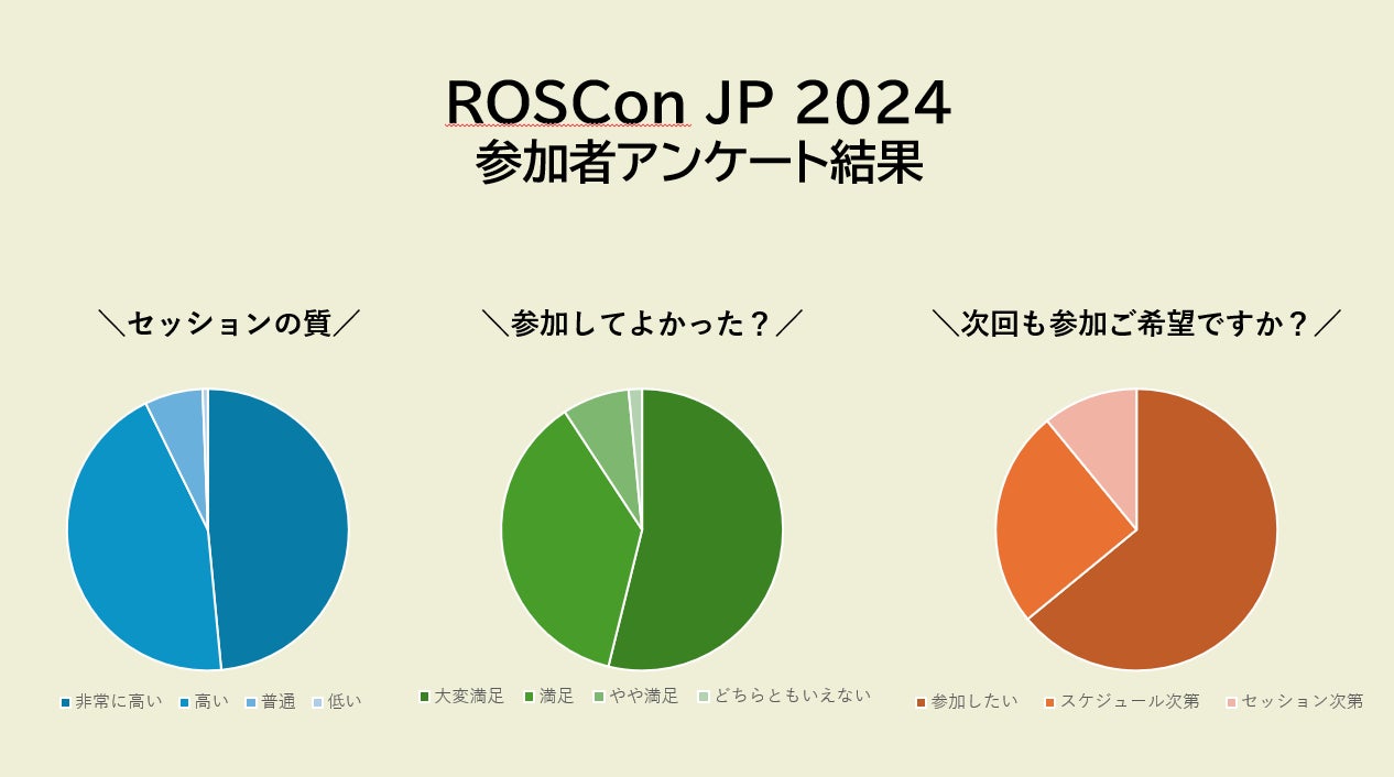 「ROSCon JP 2025」の開催もすでに決定しており、来年もさらに多くのROS開発者やエンジニアの皆様にご参加いただけることを楽しみにしております。日程や詳細については、公式ホームページやSNSで随時お知らせいたしますので、ぜひご期待ください。