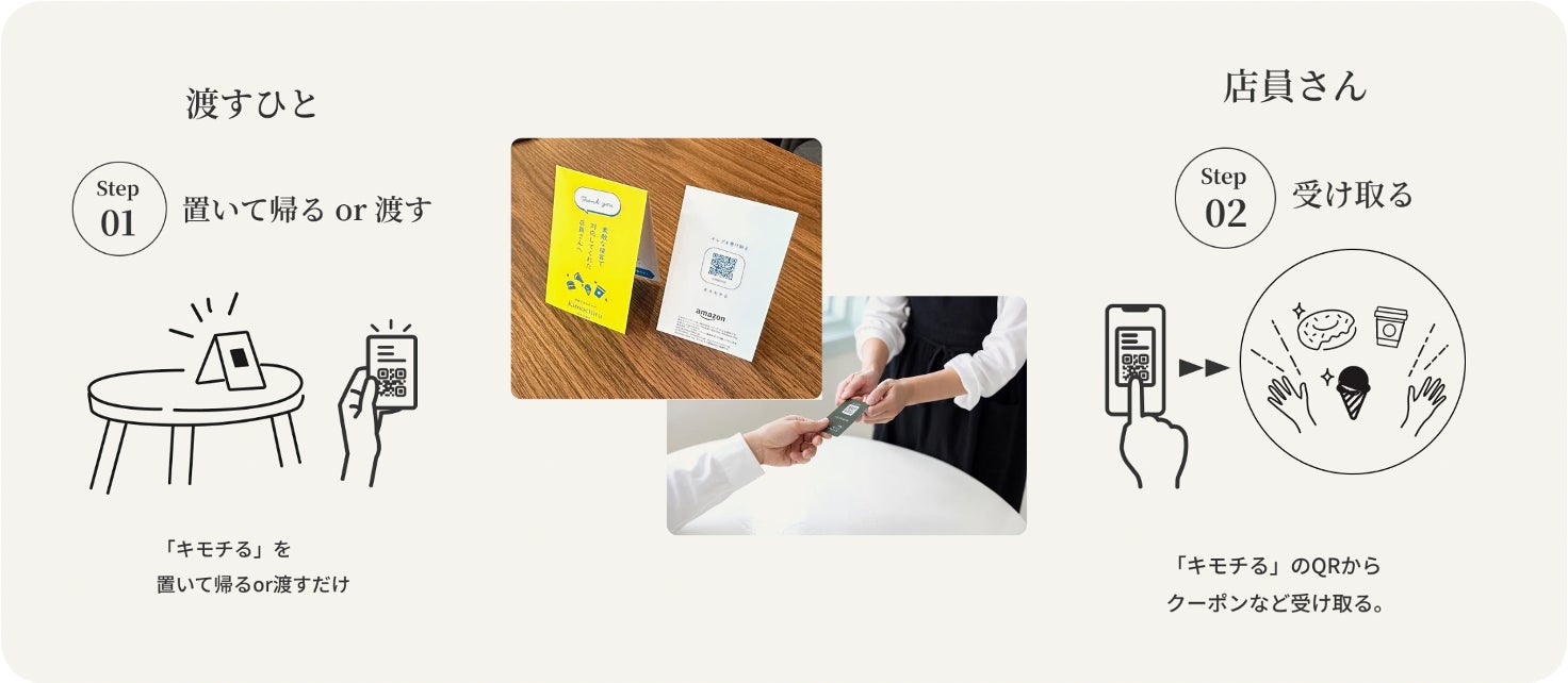 Kimochiruはアプリや店舗の導入を必要とせず、誰でもどこでも気軽に感謝の気持ちを届けられるカード型のカジュアルなリアル投げ銭サービスです。これまで見えづらかったサービス業の“持ち味”を可視化し、働く人の実質的な手取り増につながる新たな仕組みを提供しています。