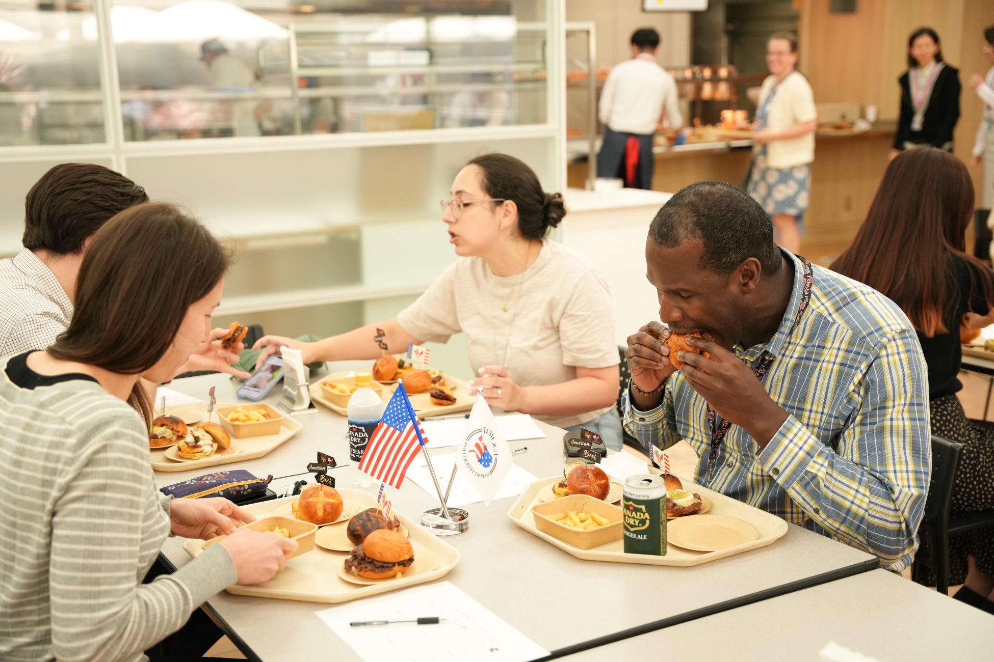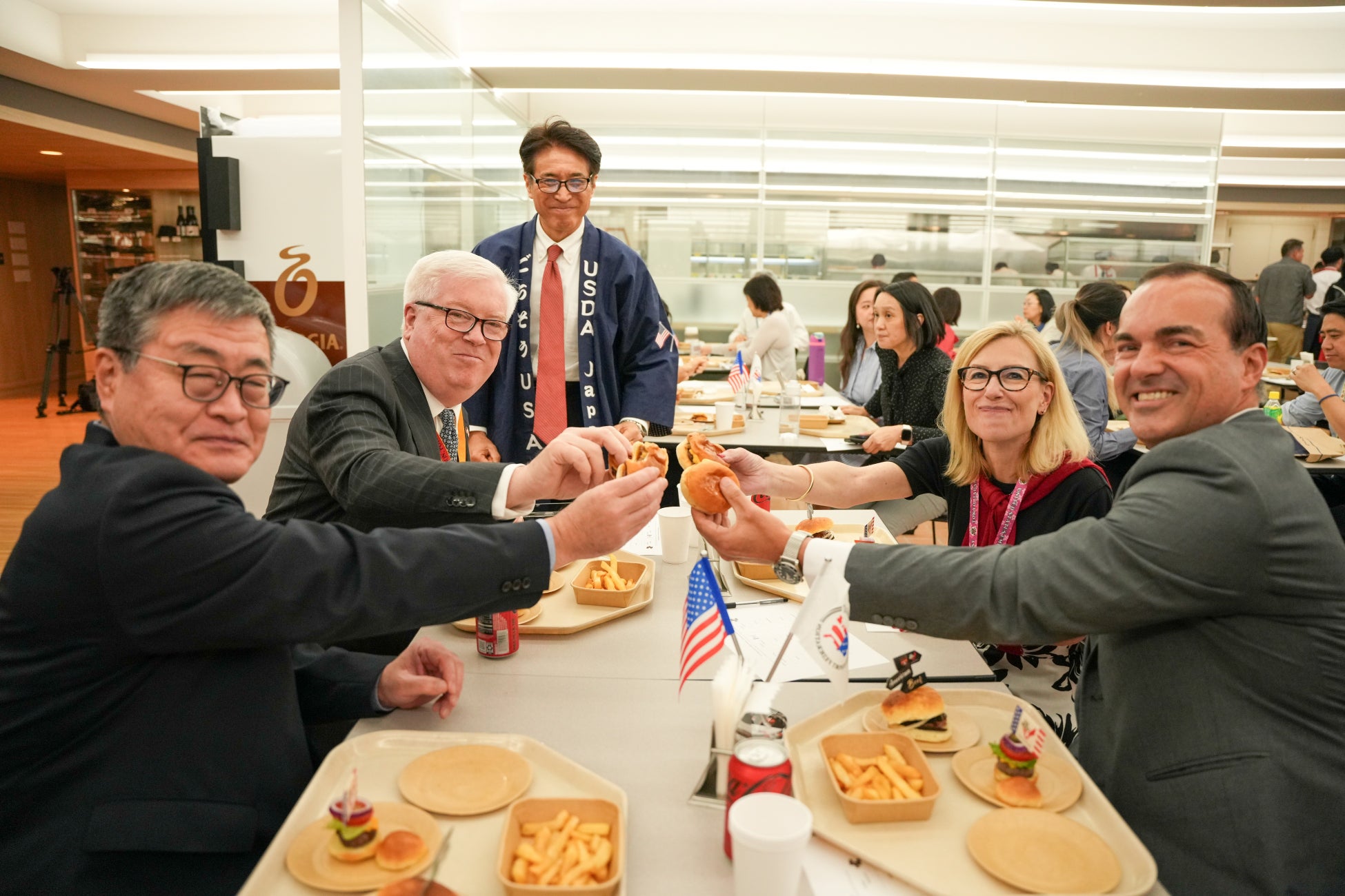 米国食肉輸出連合会(USMEF)は、「在日米国大使館公認プログラム」を始動するにあたり、5月28日(水)、29日(木)に在日米国大使館内カフェテリアにて審査会を開催いたしました。初回となる今回の審査会は日本国内のハンバーガーショップを対象とし、アメリカンビーフ100%のパティを使用した自慢のハンバーガーが提供されました。在日米国大使館関係者約150名が試食・審査を行い、「在日米国大使館公認アメリカンハンバーガーショップ」として認定される6店舗が決定いたしました。また、認定式は6月25日 (水)に行われ、認定された店舗には認定証と認定ロゴが送られます。