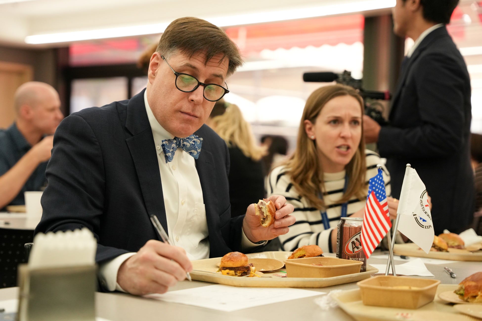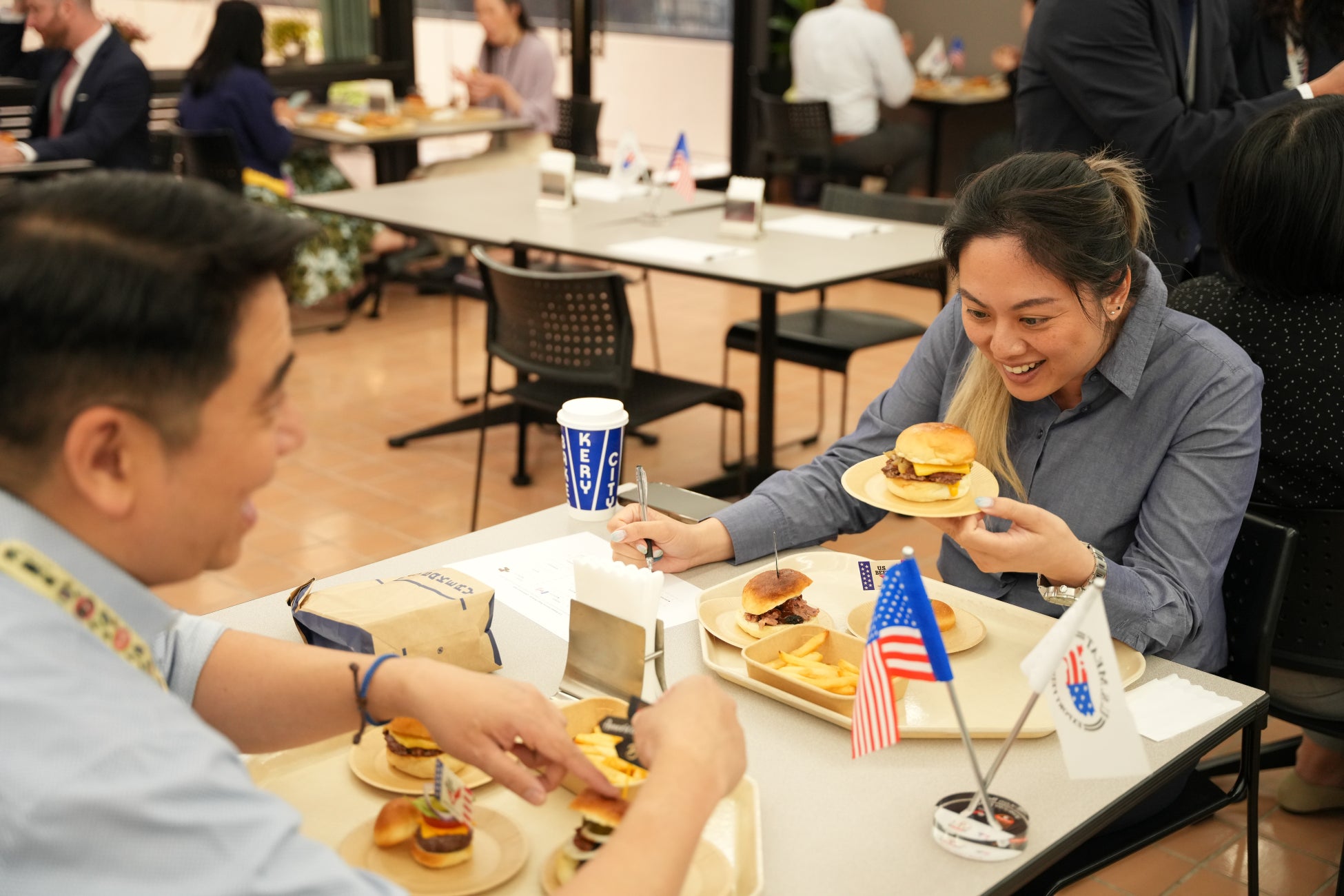 試食を終えた審査員たちはそれぞれのバーガーが持つ個性とアメリカンビーフ100%の旨みを存分に堪能し、「お肉の味がしっかりしていてよかった。」、「とてもおいしかった。また(大使館に)来て欲しい。」 などの感想を述べながら評価しておりました。