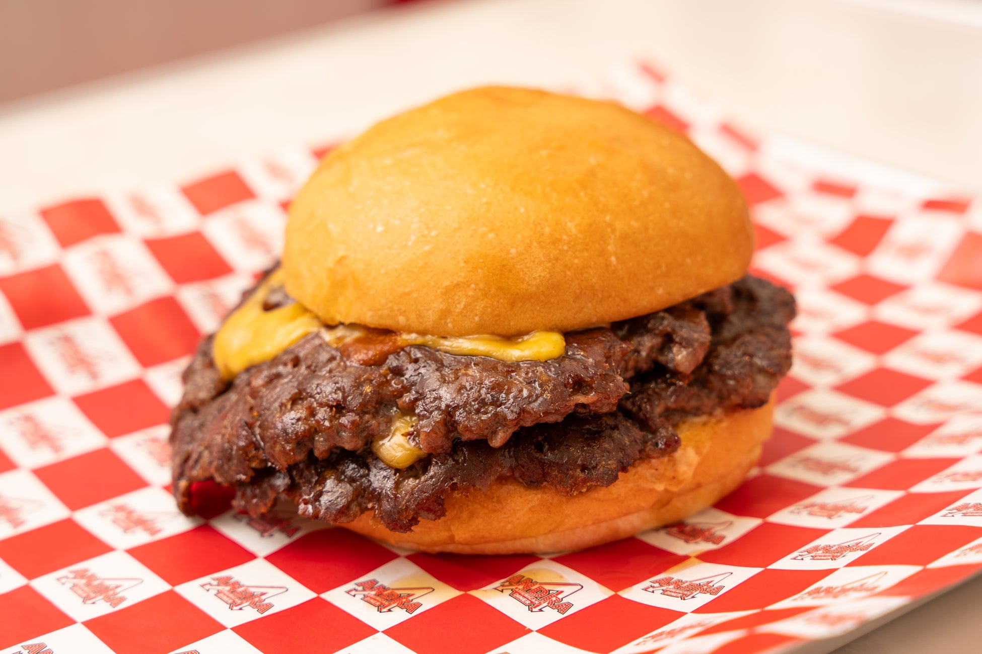 中でも看板メニューはクラシックチーズバーガー。アメリカ産100%のチャックアイロールを9㎜の超粗挽きで仕上げたパティは、肉の旨みと食感が際立ち、シンプルながらも食べ応え十分。店内は1960〜70年代のレトロアメリカンな雰囲気で、アルコール類の提供も行っている。