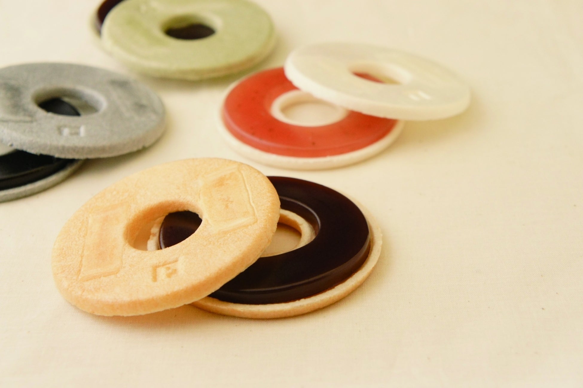 デザイナー「トネリコ」とのコラボレーションで誕生したスタイリッシュなドーナツ型のはさみ最中です。餡と皮を密封個包装にしているため、いつでもサクサクの食感。伝統を守りながら、新しい可能性をカタチにしました。こしあん、桜あん、よもぎ、黒ごまの4つの味をご用意しています。