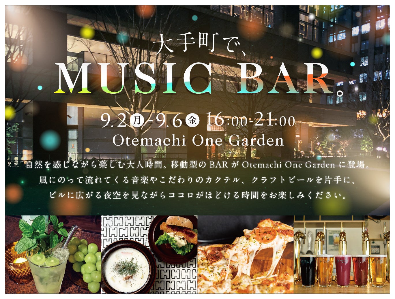 大手町エリア最大級の緑地空間「Otemachi One Garden」で様々な音楽やクラフトビール、カクテルを楽しめる「大手町で、MUSIC BAR。」も開催!