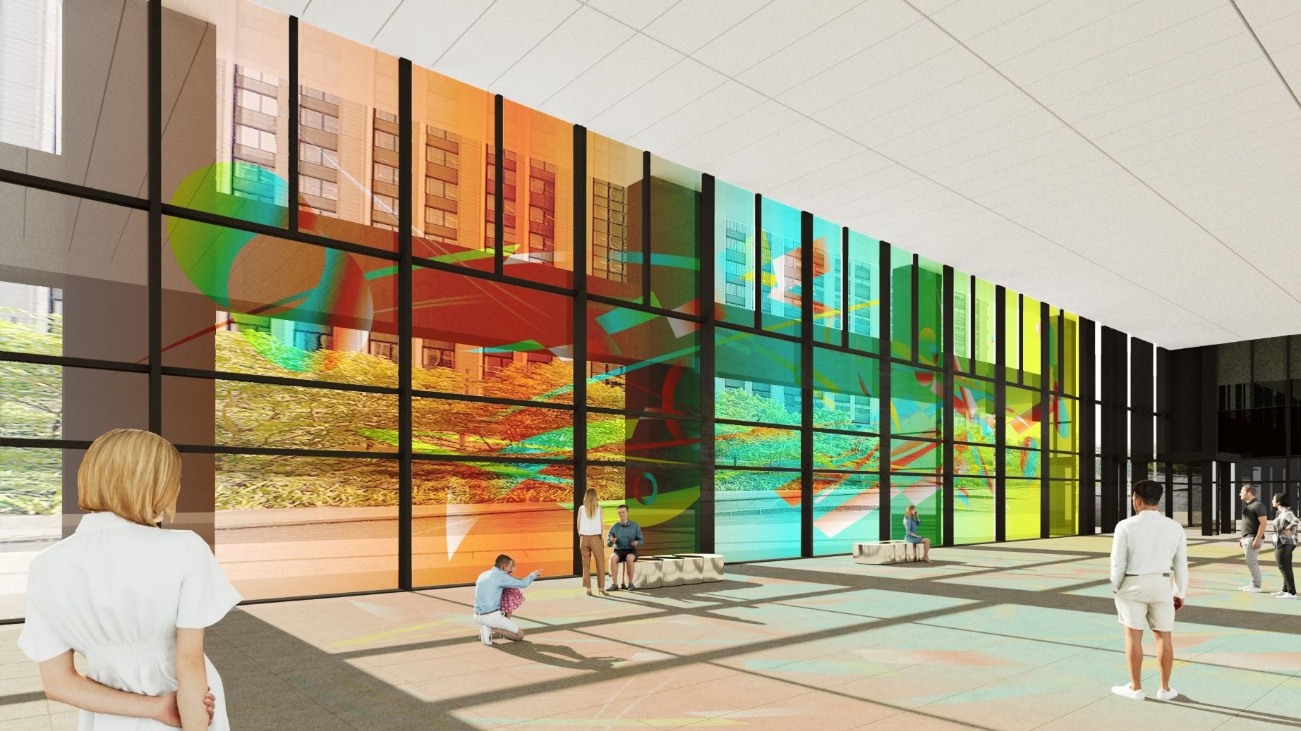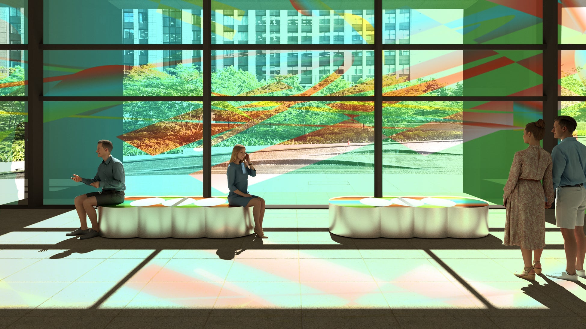 今回発表される作品Season2の「光色の窓 / Prism Window」は、館内の憩いの場所であるOtemachi One 1F オフィスロビー(堀口珈琲前)に展開されます。