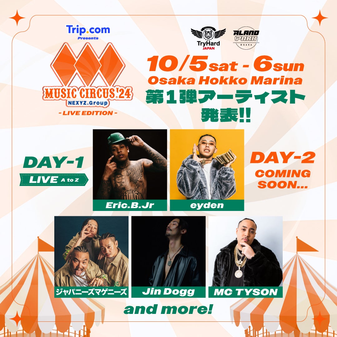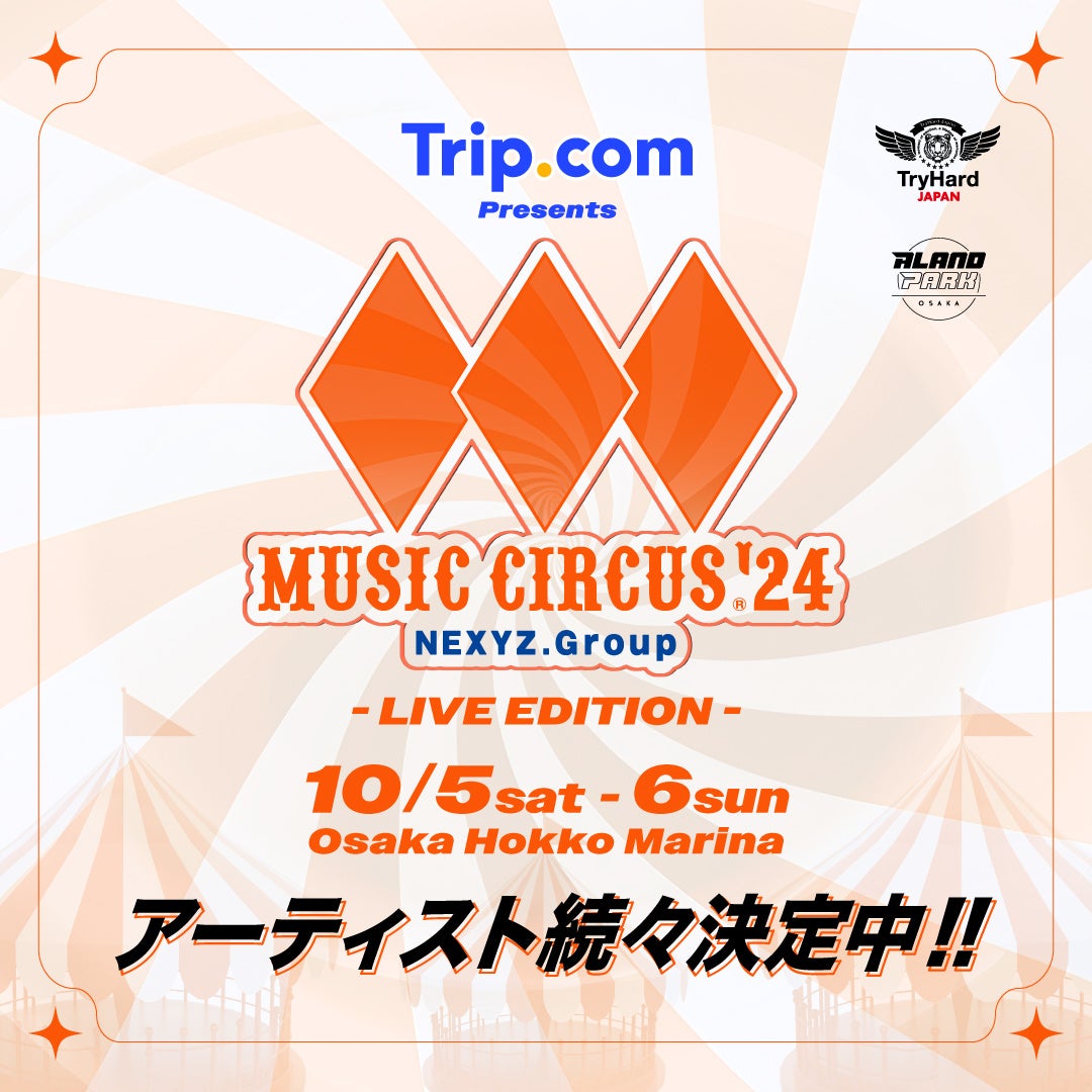株式会社MUSIC CIRCUS(所在地:東京都渋谷区)は、2024年10月5日(土)・6日(日)、大阪北港マリーナ (所在地:大阪市此花区)にて開催する、「MUSIC CIRCUS’24 LIVE EDITION」の第一弾出演アーティストを発表いたします。