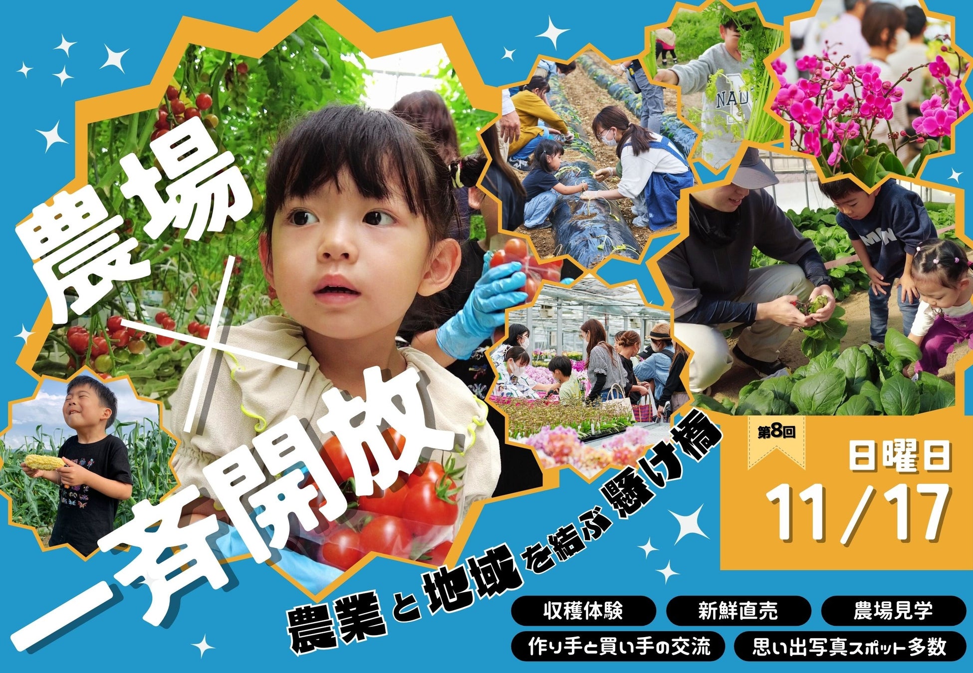 オープンファーム実行委員会は、2024年11月17日(日)に、8回目となる農場開放イベント「オープンファーム」を開催します。農産物を"五感"で感じられる魅力に、開催のたび来場者数は増し、今では1日5000人もの方が農場を訪れます。