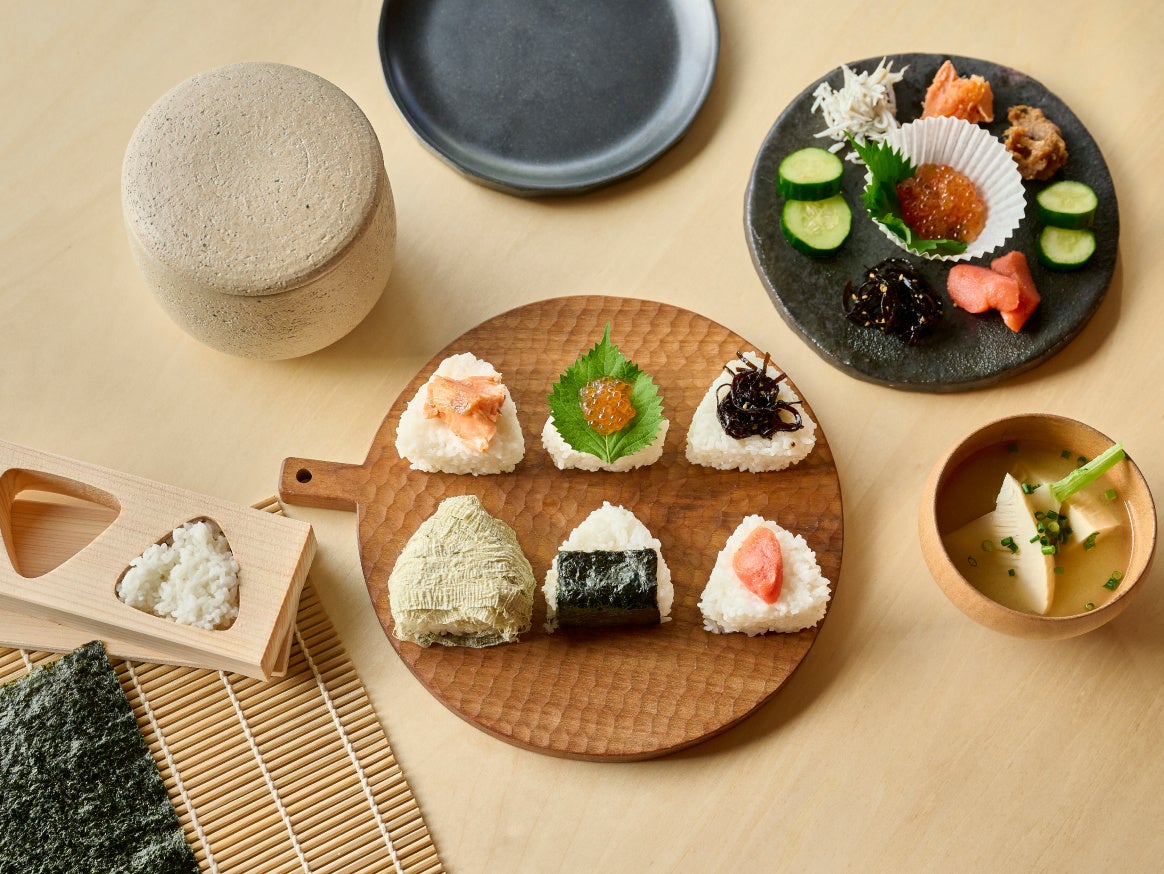 きな具材を使って作れるおむすびの和朝食と、収穫したばかりのお野菜や地元産の