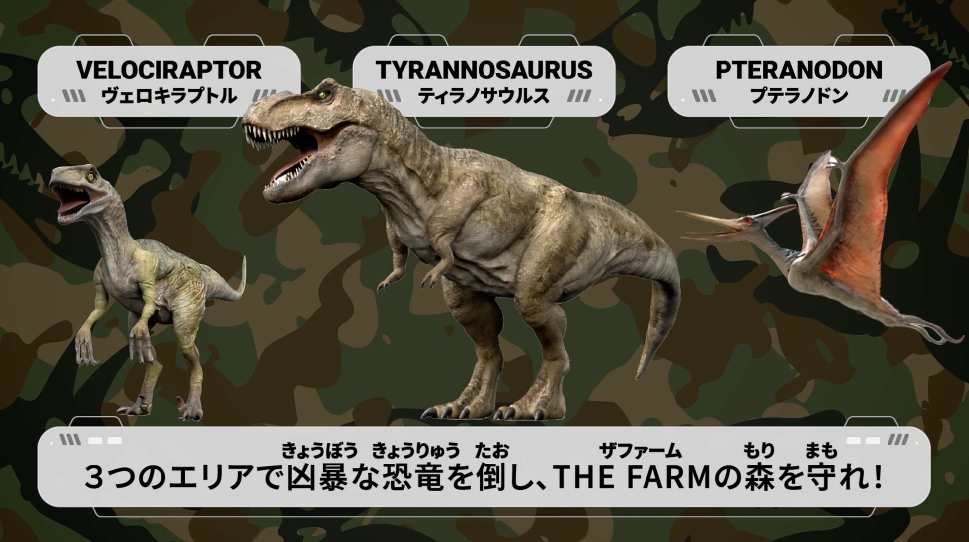 敷地内を散策しながら恐竜を発見し、専用スマホを付けた銃で撃退するAR体験。襲いかかる凶暴な恐竜から施設を守ることができるのか、スリル満点のバーチャルアドベンチャーです。