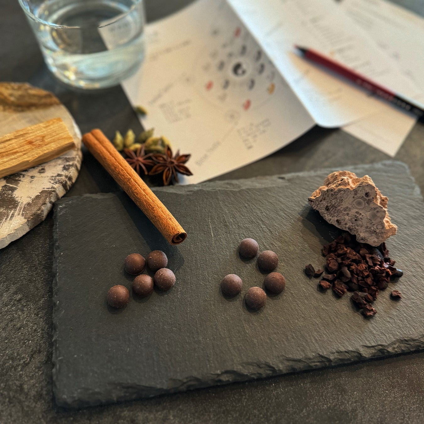 DAIGO chocolatが提唱する「ショコラ瞑想」にも通じる プレミアムカカオから作られたショコラの美味しさを五感を使って唎き分ける方法を学ぶミニワークショップです。楽しむだけのショコラから一歩進んだ、こころに響くショコラを見つけます。