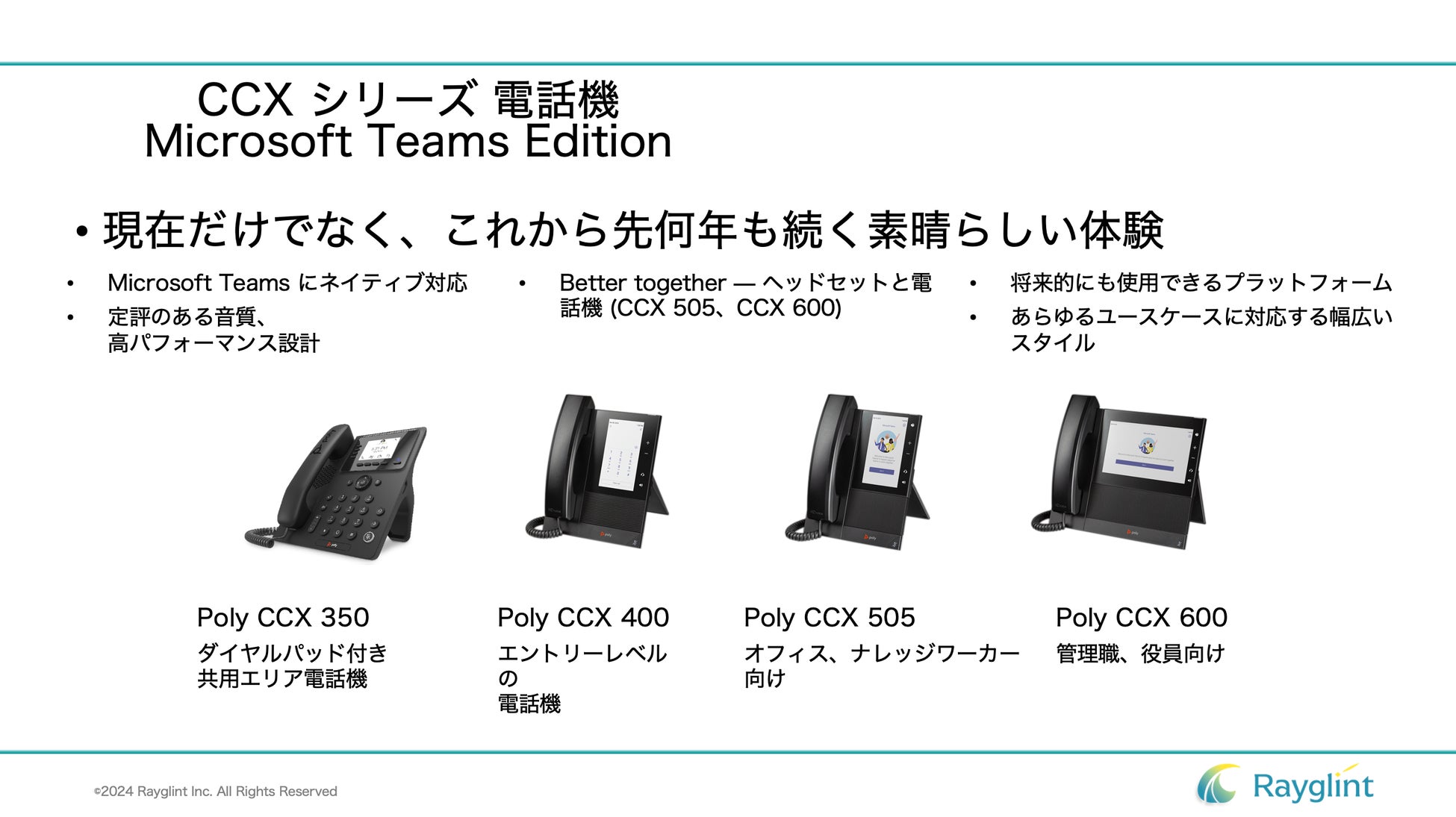• Poly CCX シリーズなどのTeams対応デスクフォンまで、豊富なラインナップを取り扱い。