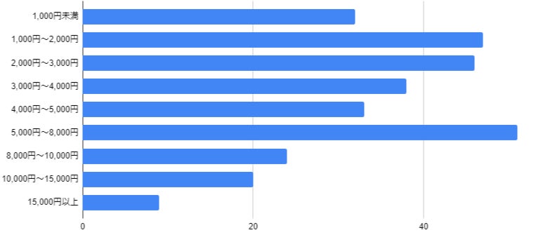 1,000円未満の方から15,000円以上払っている方もおり、月額料金には幅があることも分かりました。