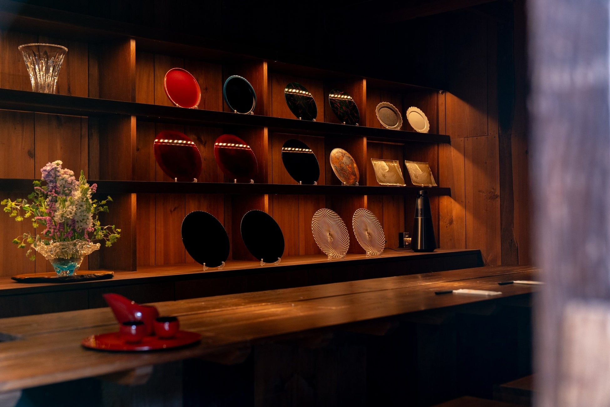 日本の漆器や陶器などの伝統工芸品を展示し、お好みの器をお選び頂ける様に準備しております。