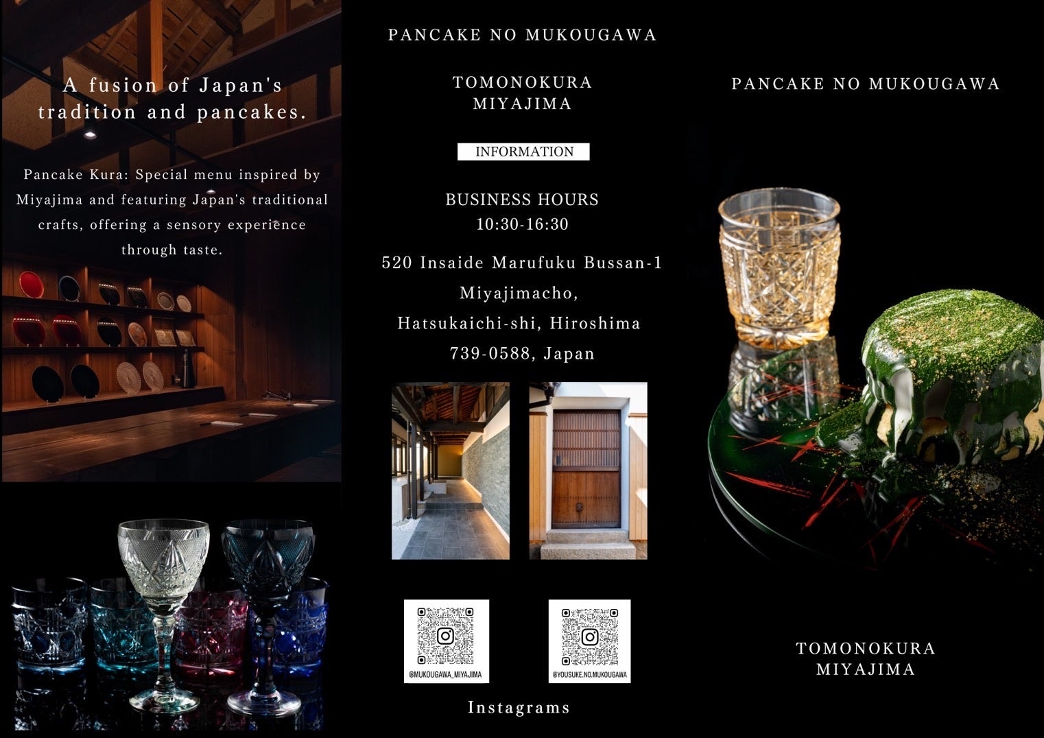 世界文化遺産・日本三景宮島初のパンケーキ蔵となっており、パンケーキや器にそれぞれの背景と物語があります。パンケーキを通じて、宮島の文化、日本伝統文化の豊かさ、地域の魅力を体験して頂けます。