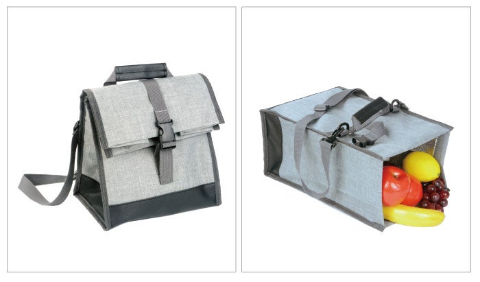 ショルダーにも手提げにも使えるクーラー仕様のランチバッグ。
