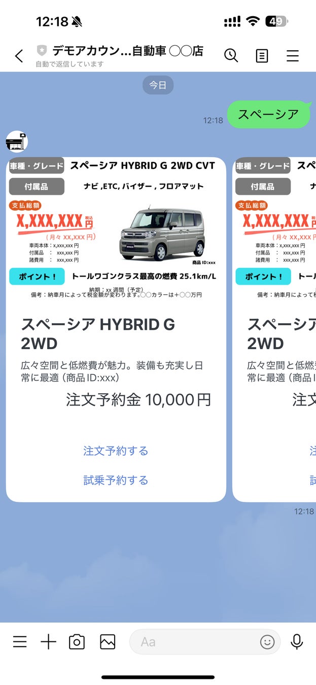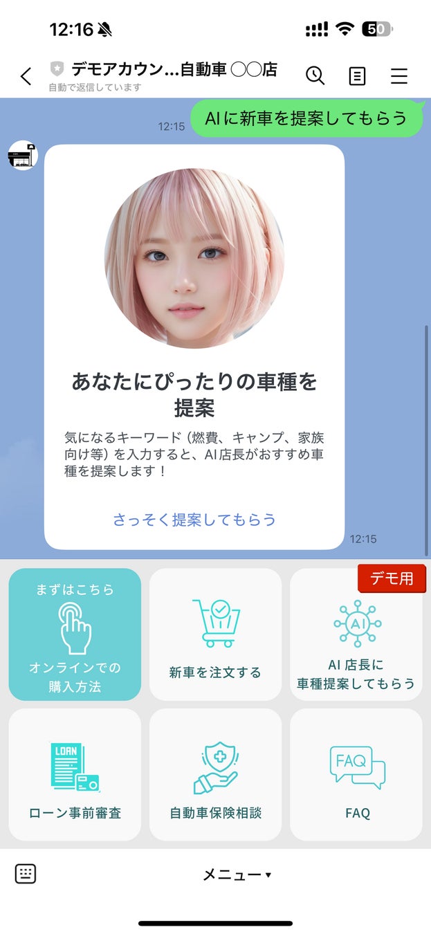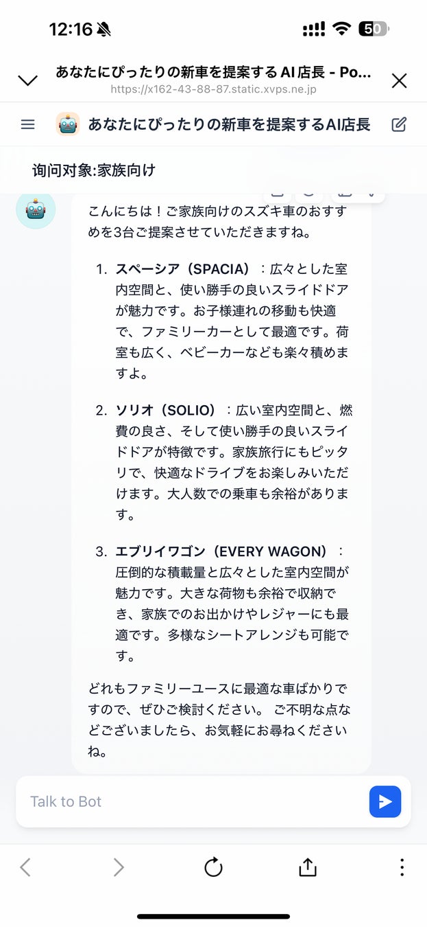 ・AIチャットボットによる車種提案(カスタマイズ可能)