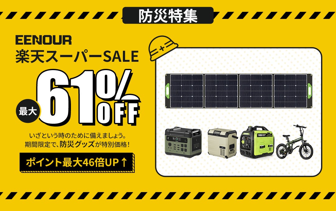 アウトドア電力供給の人気ブランド、EENOURが2024年9月4日(水)20:00より、楽天スーパーSALE期間限定の防災応援セールを開催します。