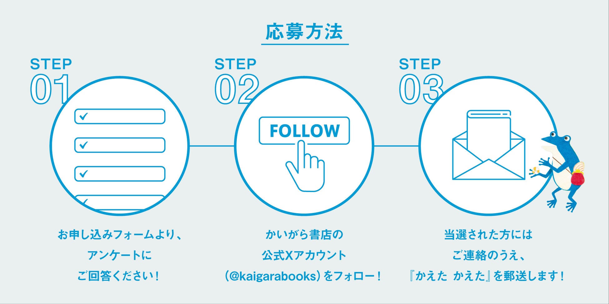 SNSをフォロー&アンケートに答えるだけで、絵本『かえた かえた』を無料でお届けします。