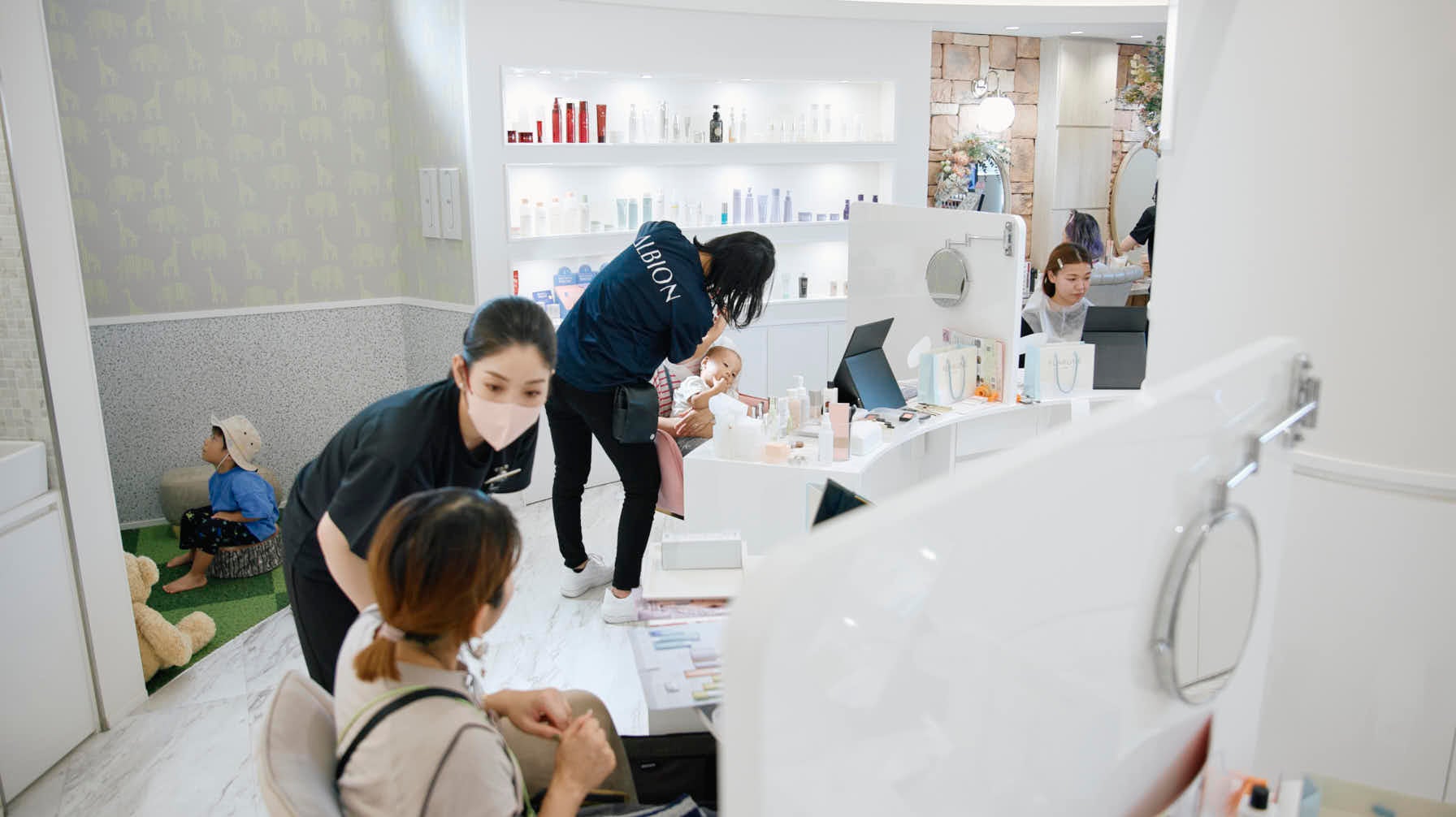 2023年8月にコスメティック緑にて行ったファミリーイベントで、一日に300人以上の来場をいただき、その中で子育て世代の女性は昔も今も変わらず、自分のお肌を向き合う時間がほとんどないということを知りました。