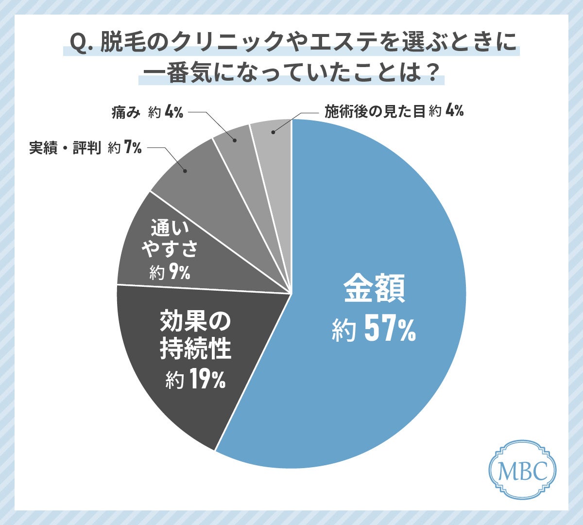 「脱毛のクリニックやエステを選ぶときに、一番気になっていたものとして、最も近いものを以下から一つお選びください。」とアンケート調査した結果、