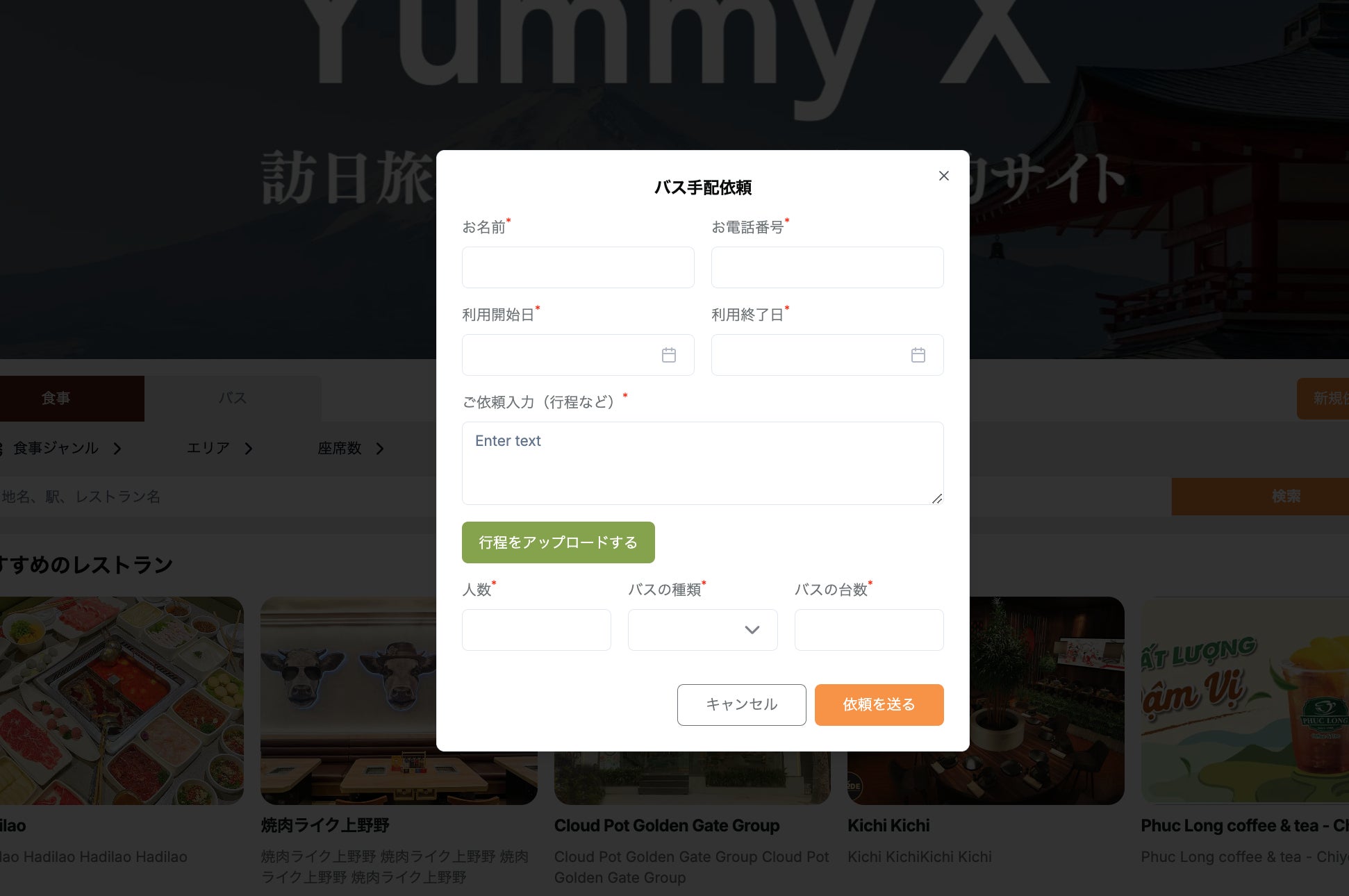 「Yummy X」を活用希望の旅行会社、掲載希望のインバウンド事業者のご相談は下記URLの問い合わせよりご連絡お願いします。