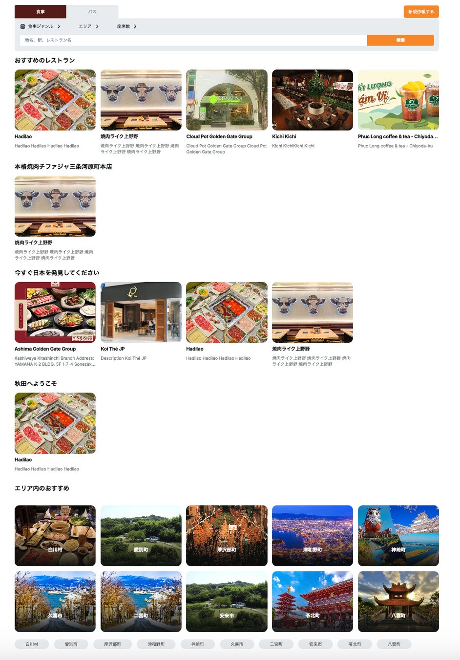 インバウンド事業者向け飲食・観光・施設総合手配マッチングサイト