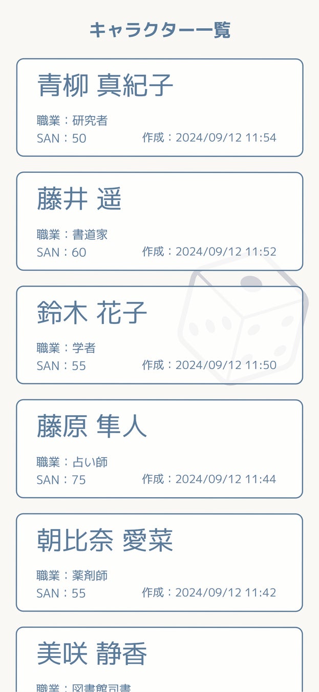 作成したキャラクターシートを簡単に管理できる管理機能や、キャラクターを自由にカスタマイズできる編集機能を搭載しています。これにより複数のキャラクターを効率的に管理し、さまざまなTRPGセッションに対応できます。作成後もキャラクターを進化させたり、異なるシナリオに合わせて調整することで、より深くTRPGの世界を楽しむことが可能です。
