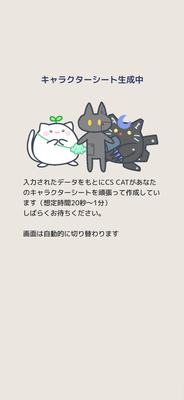従来、TRPG初心者にとってキャラクターシートの作成は複雑で時間がかかり、ゲームに参加するまでの大きな障壁となっていました。しかし、「CS CAT」はAIを活用することでこのプロセスを簡略化。ユーザーがいくつかのキーワードを入力するだけで、キャラクターの能力値、技能、バックストーリーまでAIが自動で生成し、短時間で高品質なキャラクターシートを完成させます。