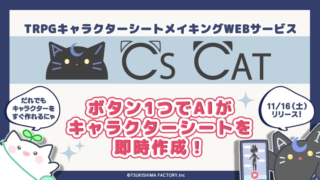 株式会社月島ファクトリーは、TRPG(テーブルトークRPG)の初心者でも簡単にキャラクターシートを作成できる新しいサービス「CS CAT」をリリースいたしました。