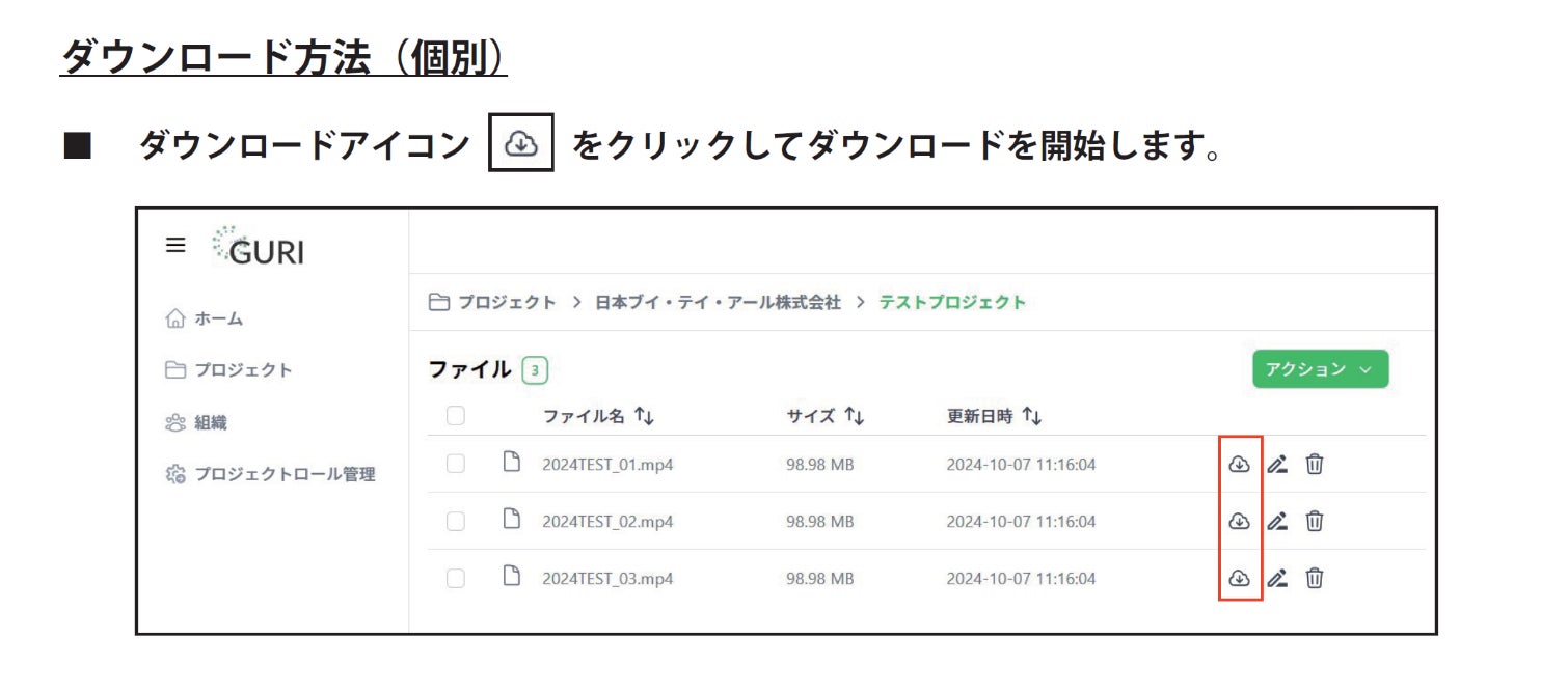 例えば、10G通信環境なら100GBの映像データをダウンロードする場合でも、GURIならわずか数分で完了(通信環境に依存します)。 トライアルを通じて従来のストレージ環境からの移行時にどれだけ業務効率が改善するかをご実感いただけます。