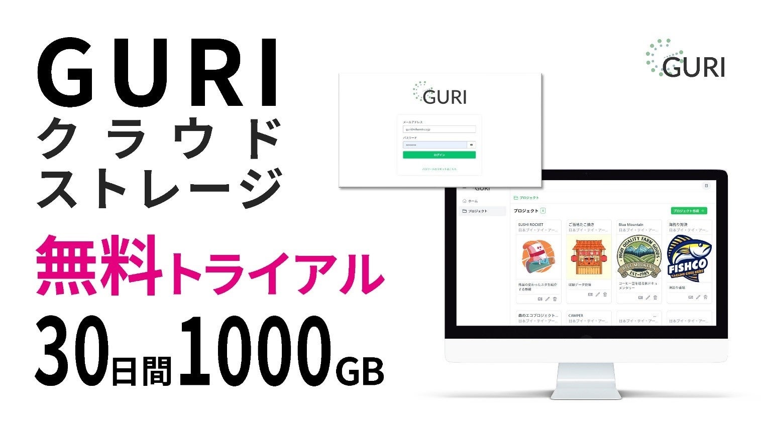 1000GB・30日間の無料トライアルで、GURIの利便性とパフォーマンスを体感いただけます。