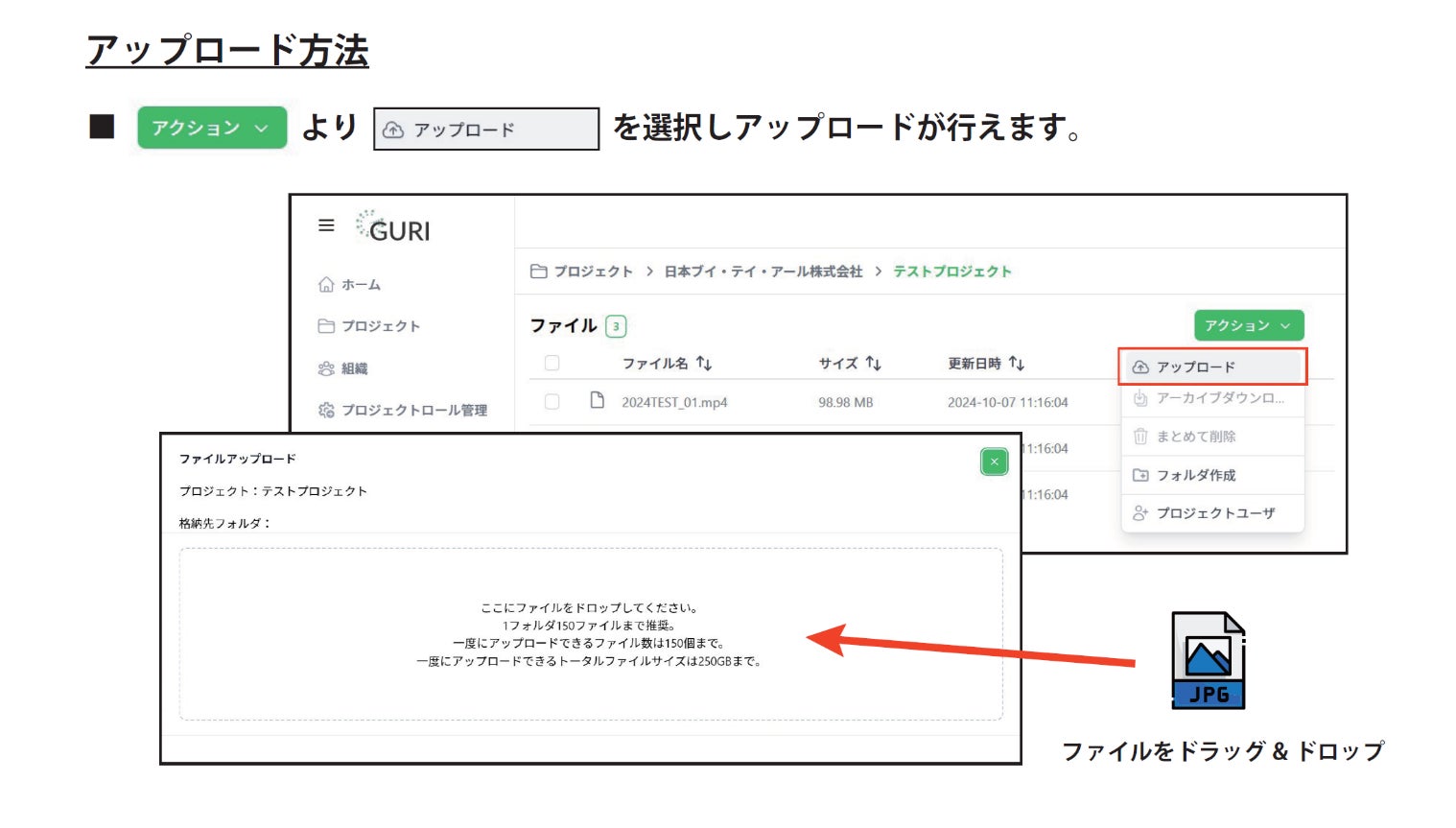 これにより、日々の業務で取り扱う大容量データを実際にGURIへアップロード・ダウンロードすることで、他のサービスに比べて圧倒的に高速な転送速度を体感いただけます。