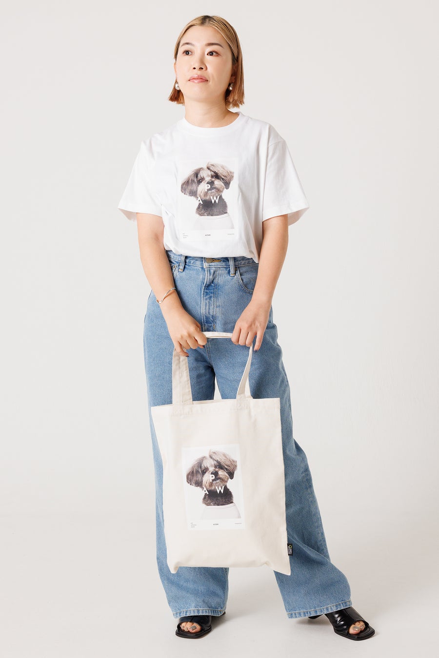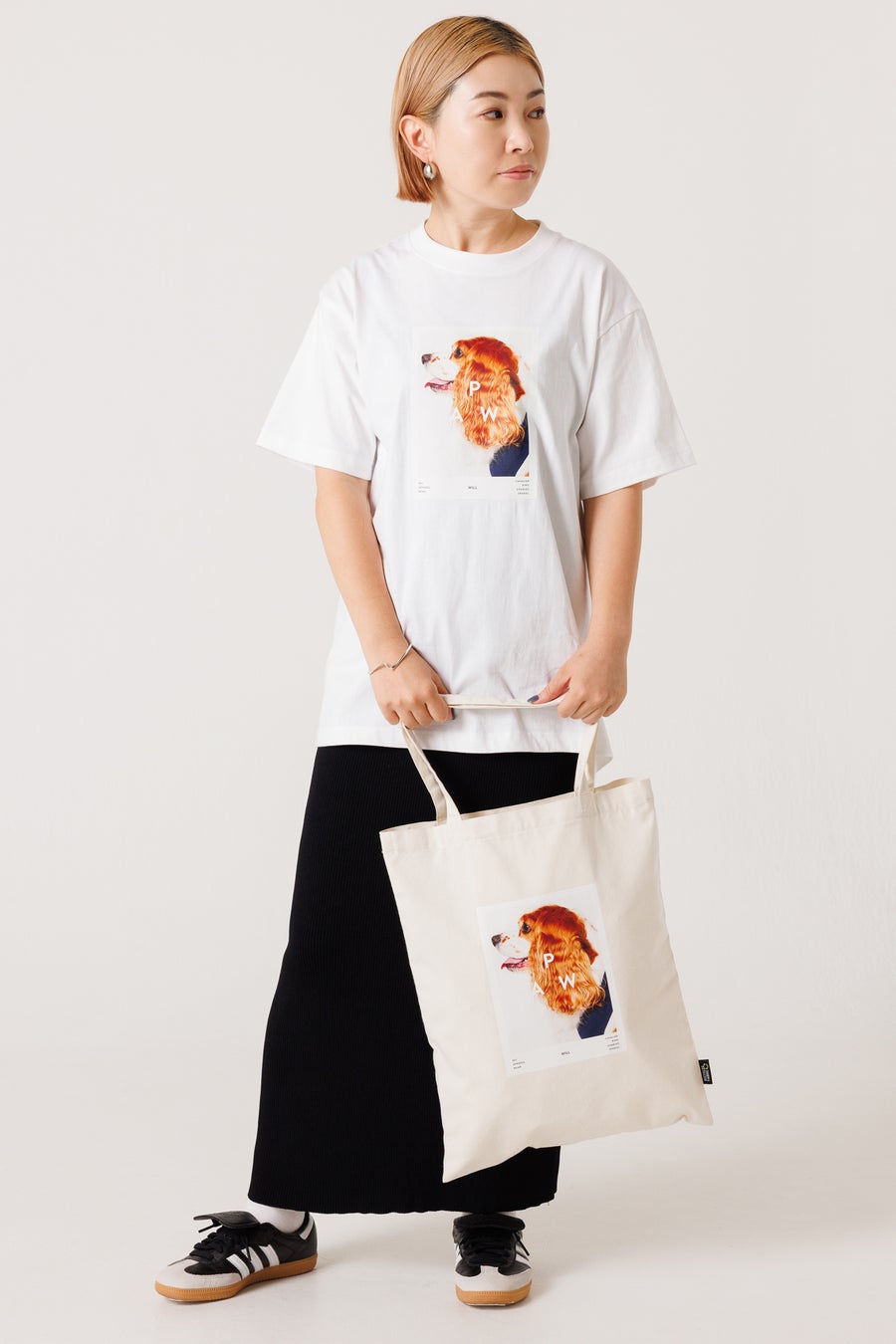 S〜XLの4サイズ展開のユニセックスTシャツと、愛犬との散歩やワンちゃんイベントの時のバッグとしても便利なトートバックをラインナップ。