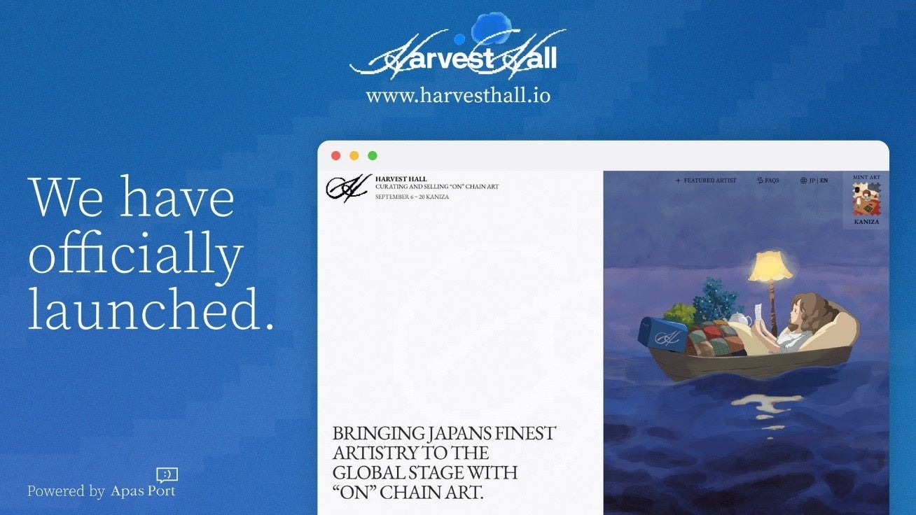 NFT発行を中心にコミュニティ運営や演出を行うWeb3クリエイティブプロデュースの株式会社Apas Port(本社:東京都渋谷区、代表取締役社長:佐々木大輔)と世の中をエンターテインメントで明るくし、日本のエンタメを世界に広げること、令和における総合商社を目指すジャパンコンテンツエンターテインメント株式会社(本社:東京都渋谷区、代表:針山 大輔)は、ジャパンコンテンツエンターテインメント会社提携のアニメーターかに座の初のNFTアニメーションを2024年8月31日(土)「オンチェーンデジタルカルチャー」を育み、広める新事業Harvest Hallの公式サイトより販売リリースします。
