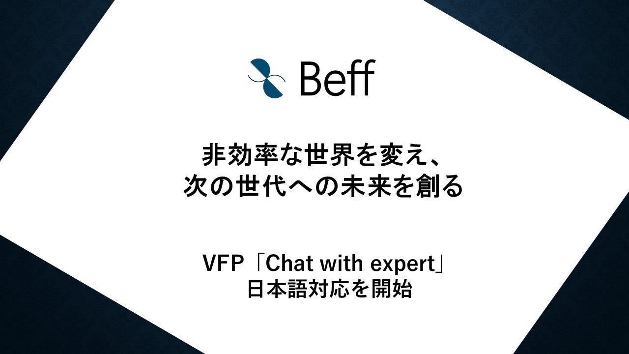 AI×電池開発のスタートアップであるBeff株式会社は、電池業界の第一線で活躍する専門家の知見を得られるVFP「Chat with expert」の機能を拡充し、日本語での対応が可能となりました。これにより、日本市場における幅広いお客様にご利用いただけるサービスへと進化しました。