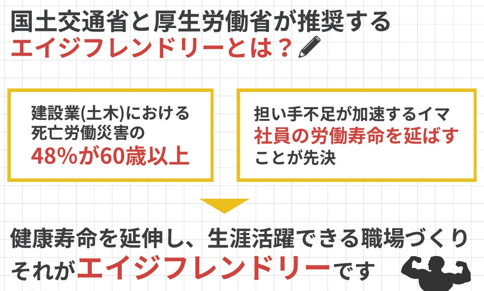 エイジフレンドリーサービスは、現場で長く働ける身体作りをサポートするために設計されており、労働災害リスクの低減や社員満足度の向上を目指しています。