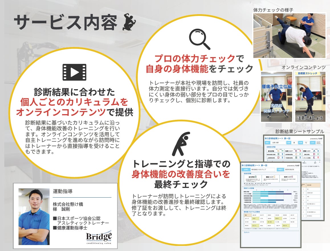 提供サービス:従業員体力診断、個別フィットネスプラン、健康経営、運動指導