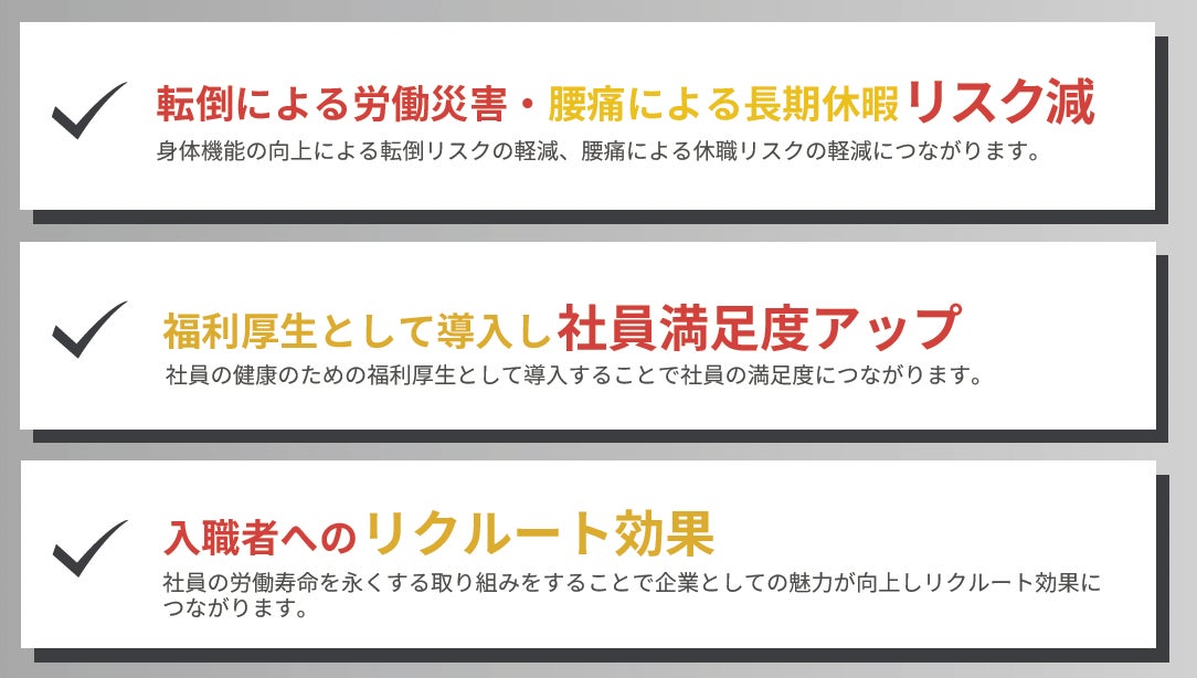 転倒による労働災害、腰痛による休職など職場のリスクを低減