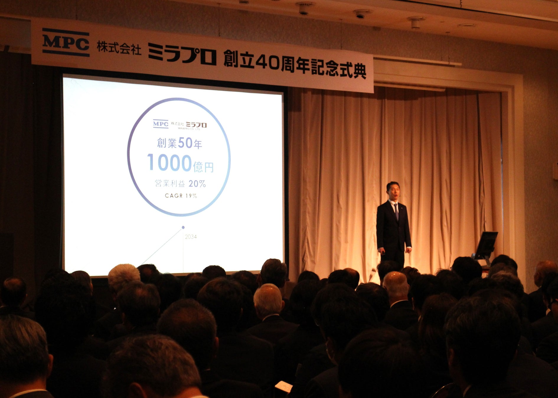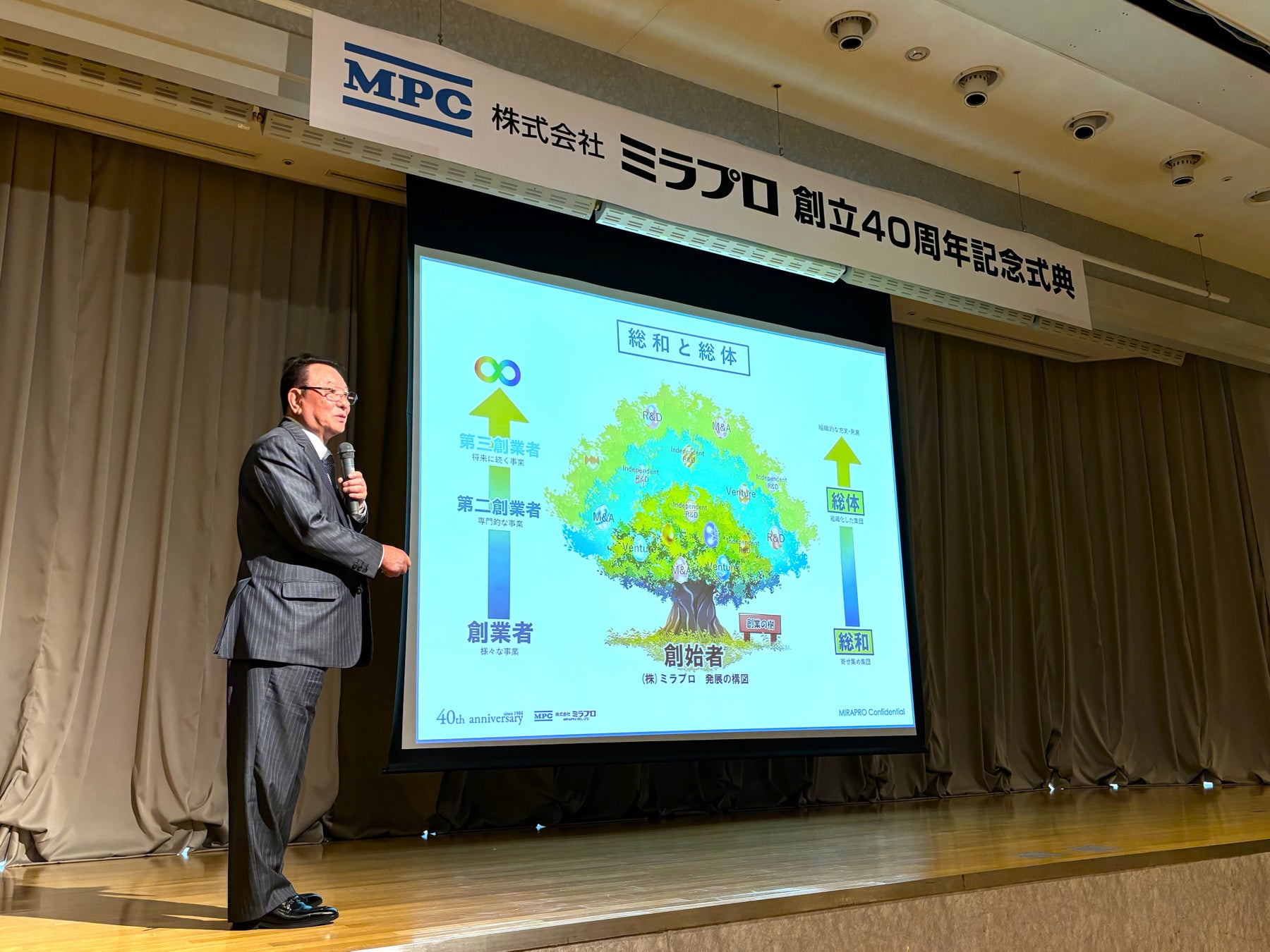 株式会社ミラプロ(本社:山梨県北杜市須玉町穴平1100、代表:津金洋之)は本年6月30日をもって創立40周年を迎え、10月11日(金)に創立40周年記念式典および記念講演会を開催いたしました。式典では、当社の歩みを振り返るとともに、未来への展望をご臨席いただきました皆様と共有させていただくことができました。グループ会社および協力会社の皆様とともに豊かな未来を創造しながら力を合わせて、さらなる飛躍と成長を目指していきます。
